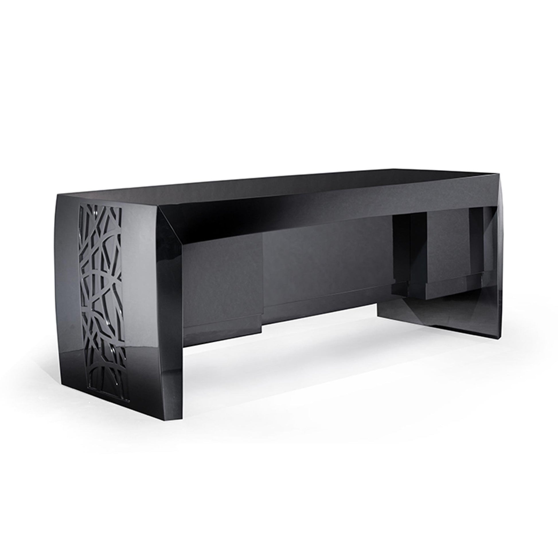The Nocturne Suite combines the sonorous rich movement of night music with taut precision sculpted surfaces resulting in an original form all on their own. Strains of eastern motifs weave through the designs. They maintain a stately presence in either poly-chrome resin high luster finishes or a selection of choice veneers.