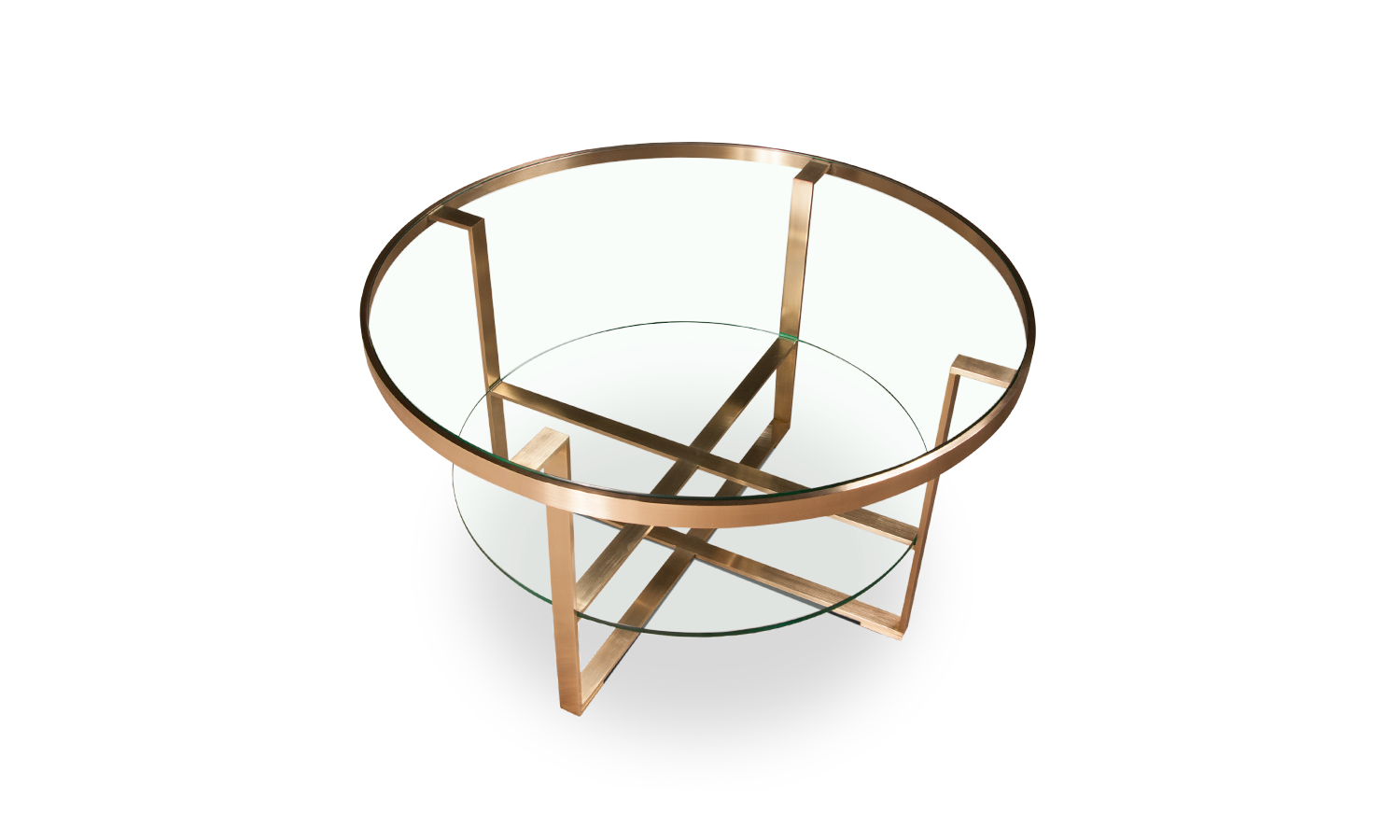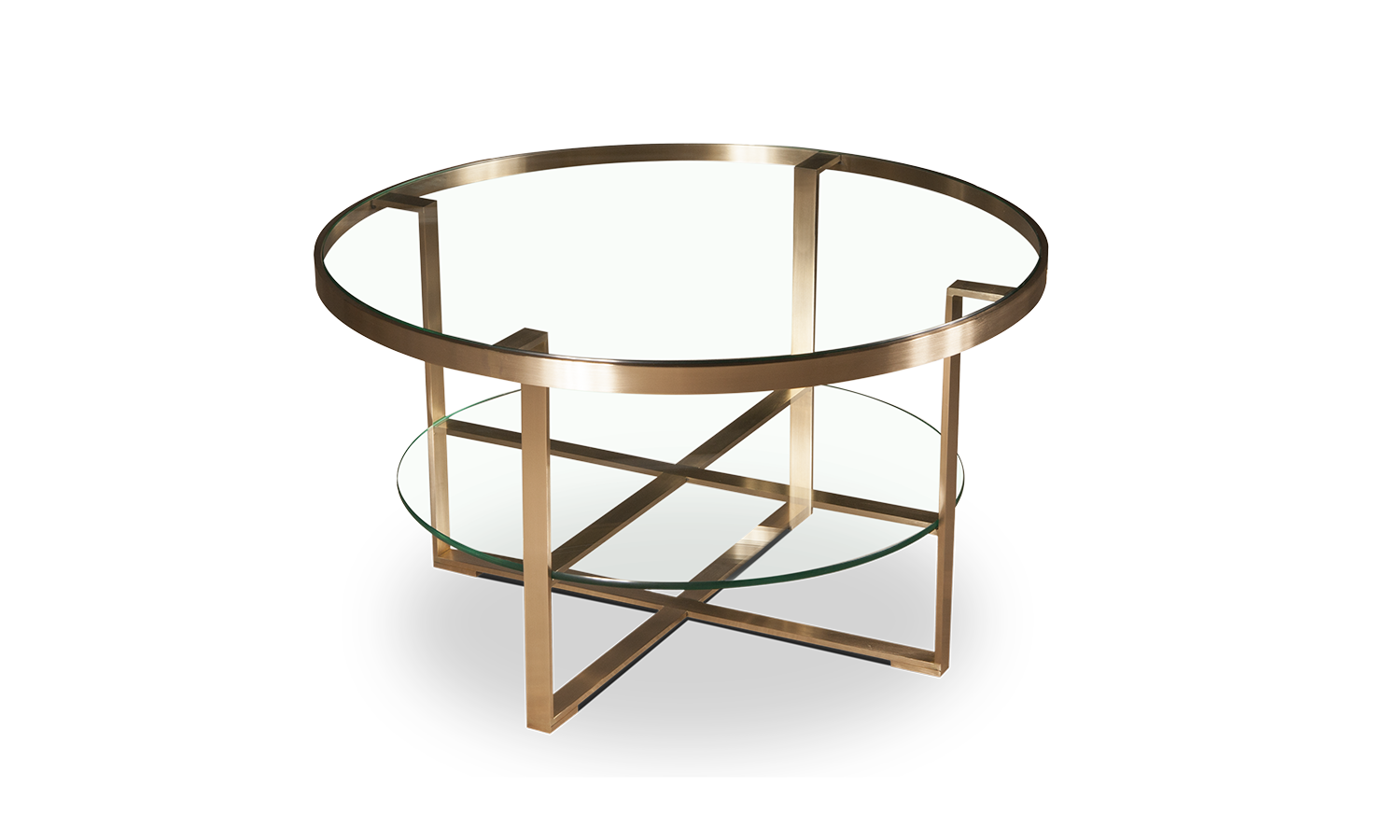 This coffee table features a brushed brass structure and tempered glass top. Other sizes or finishes may be available on request.