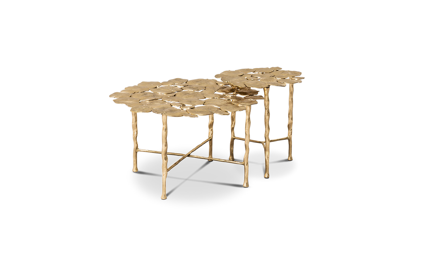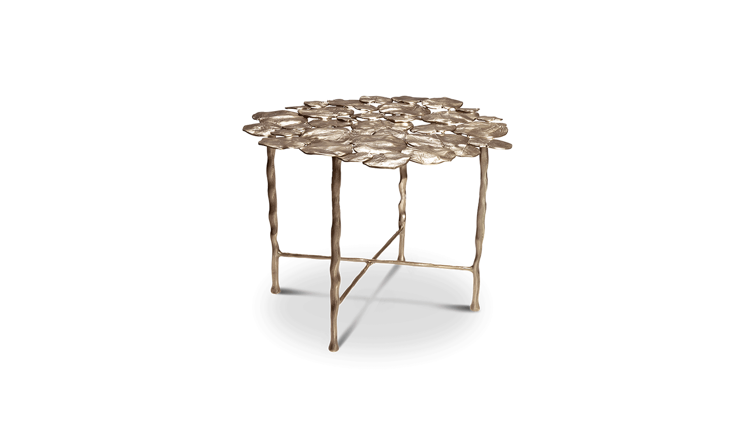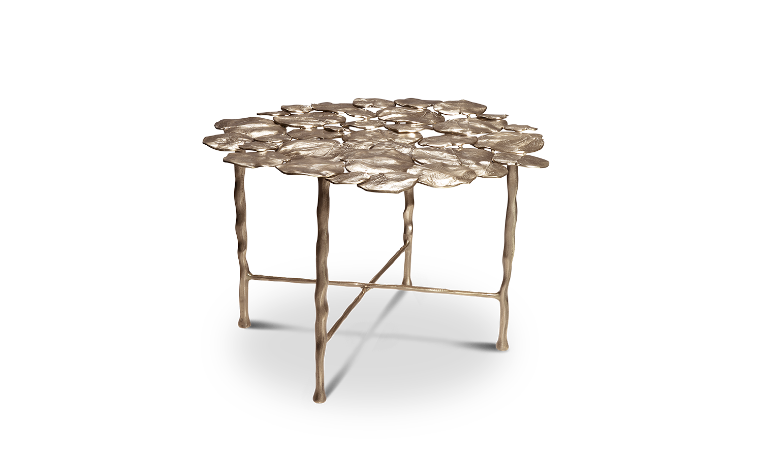 Inspired by nature, the Nymphea tables combine form and function in beautiful cast brass or cast aluminium. With various standard as well as custom sizes, they can be combined together or with other tables to create intriguing vignettes. The tables highlight both the beauty of the material as well as the artisanal prowess required to make them.