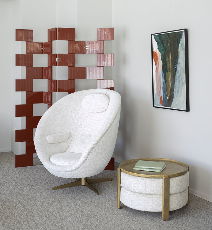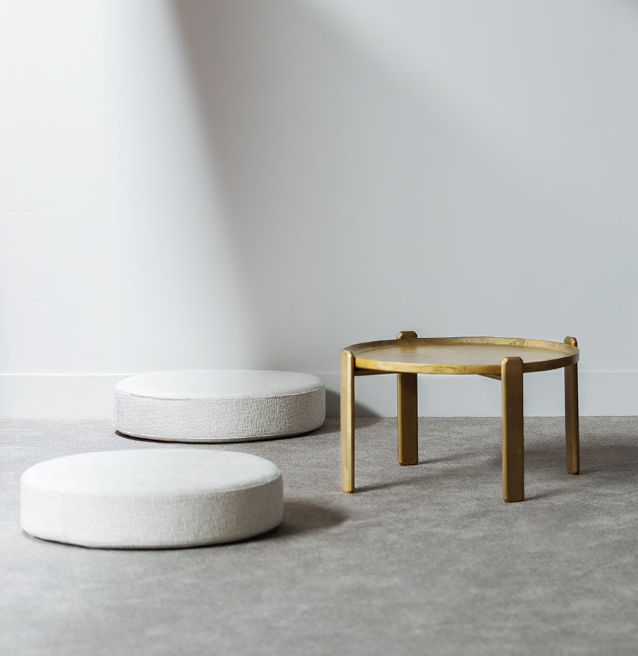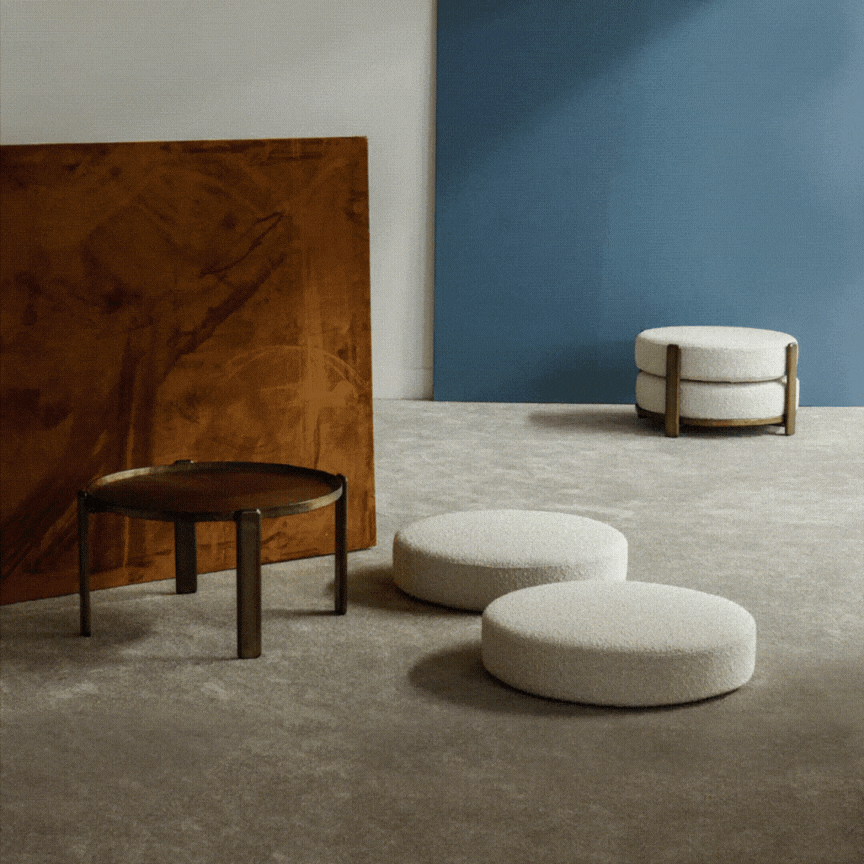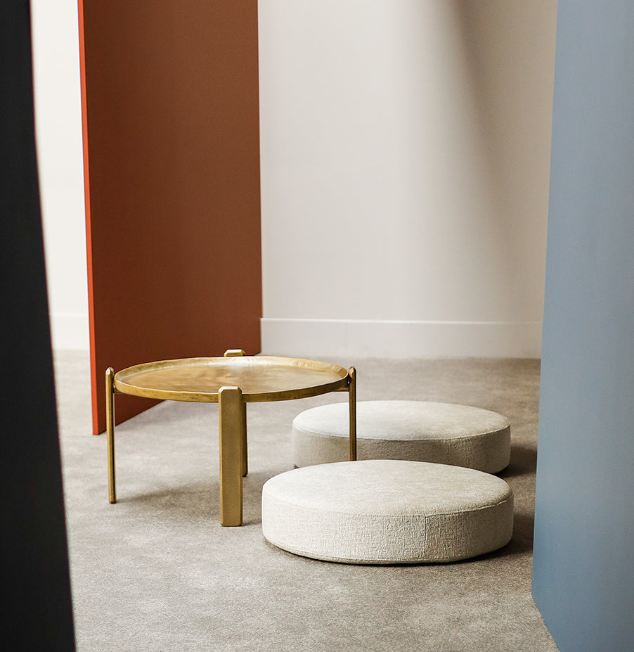 Its two cushions can be above (pouf version) or below (table version) and can even be scattered on the floor for more bohemian moments. Available in Cat I-VI fabrics or leathers, its cushions can also be covered in customer fabric.