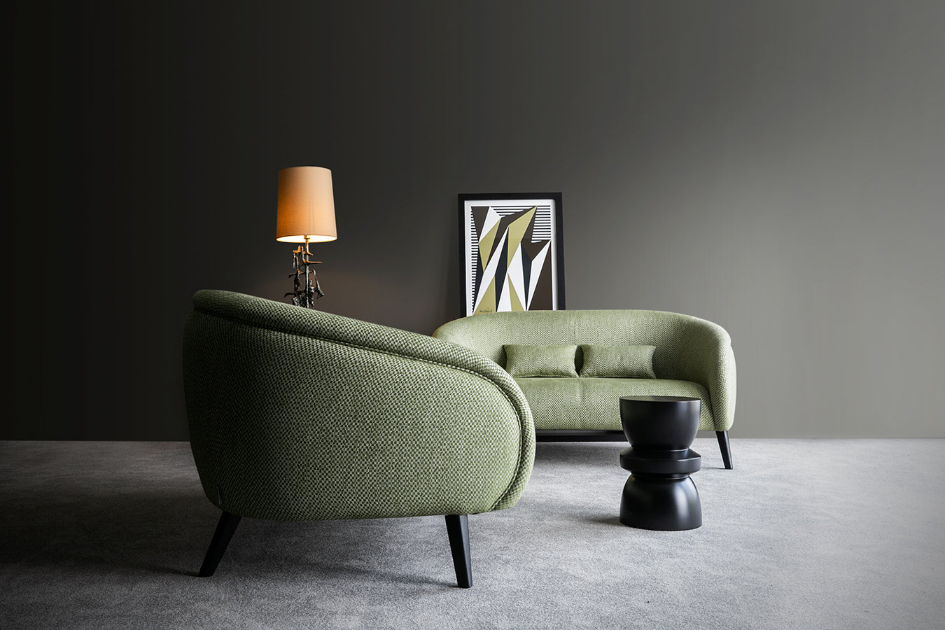 Oleg brings a stylish touch to any space with its subtle curves and 1940s inspiration. Available in armchair or sofa versions, it is perfect as a matched ensemble or in separates.