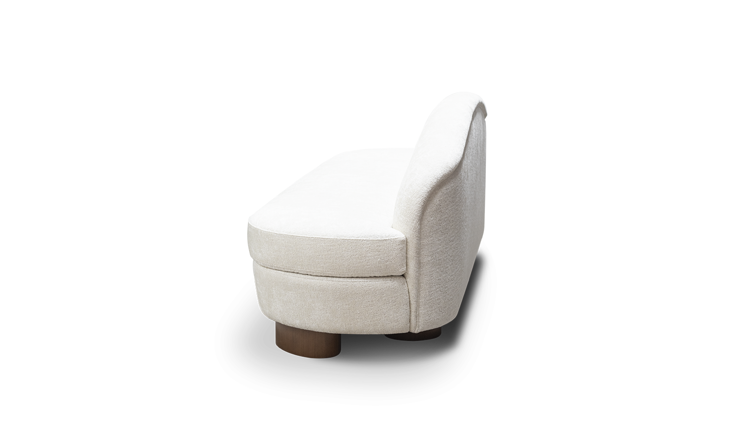 This banquette has a removable seat cushion and a solid wood structure with feet in standard finishes. It is available in Cat. I-VI fabrics and leathers (11 m / un.) and is possible in customer’s own material.
