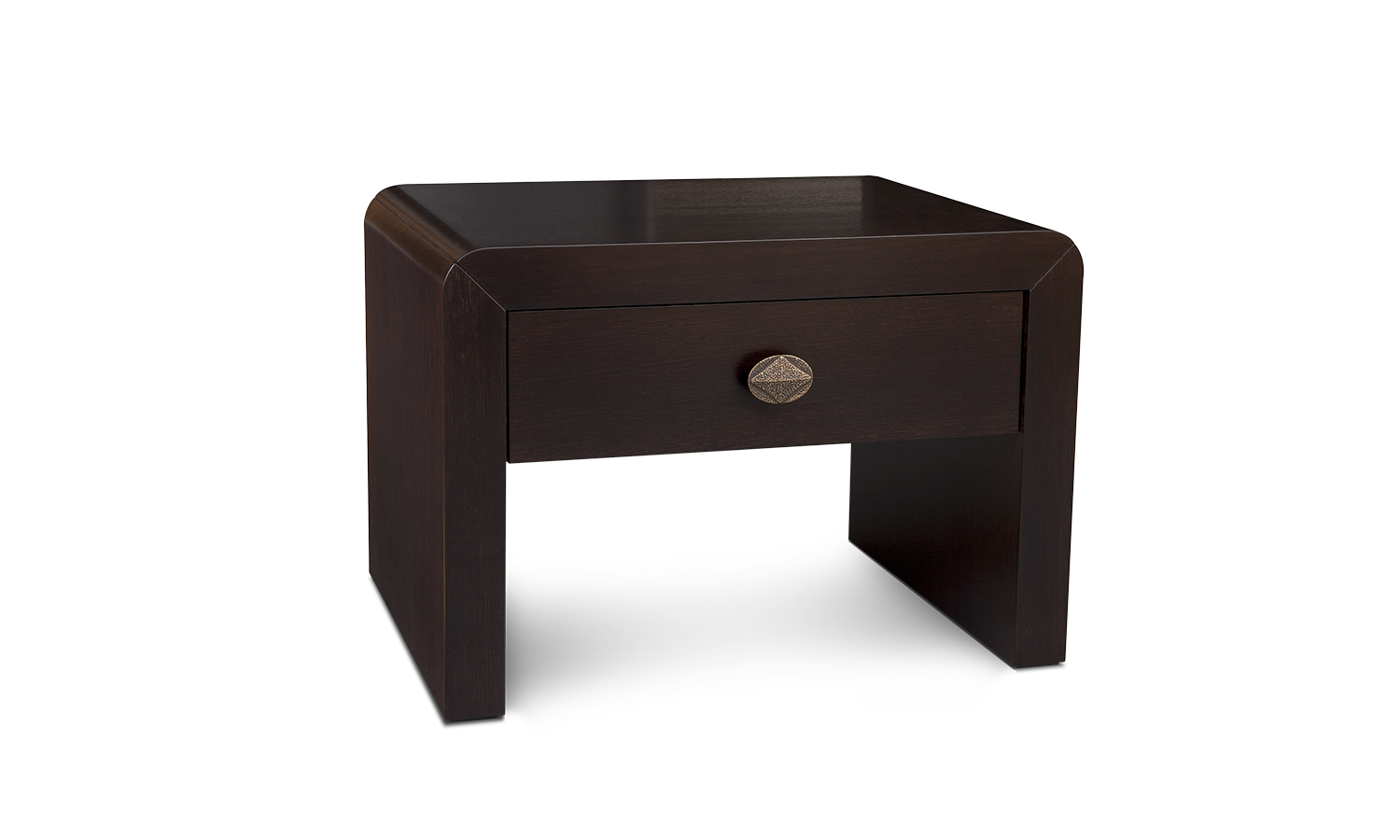 This side table features a wood veneer top available in oak with Espresso finish. Other sizes or finishes are available on request.
