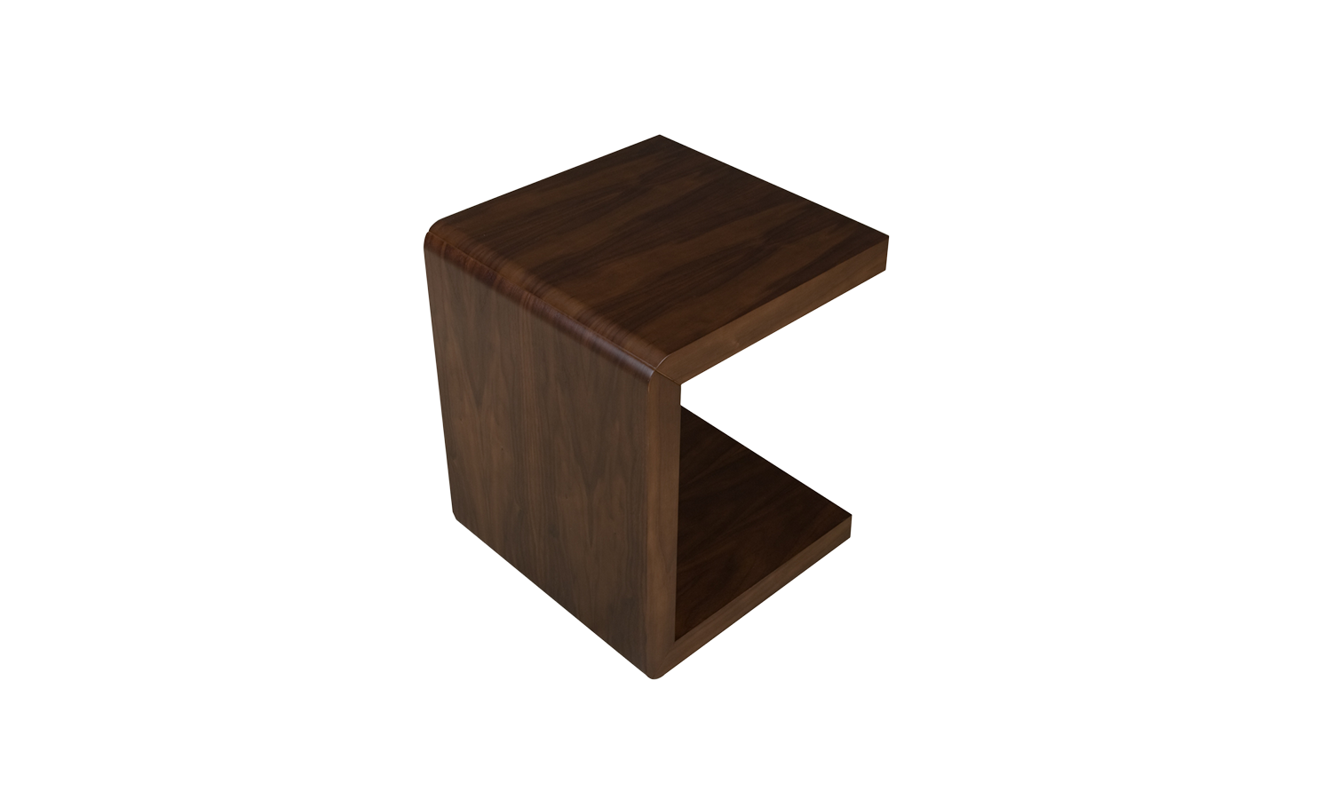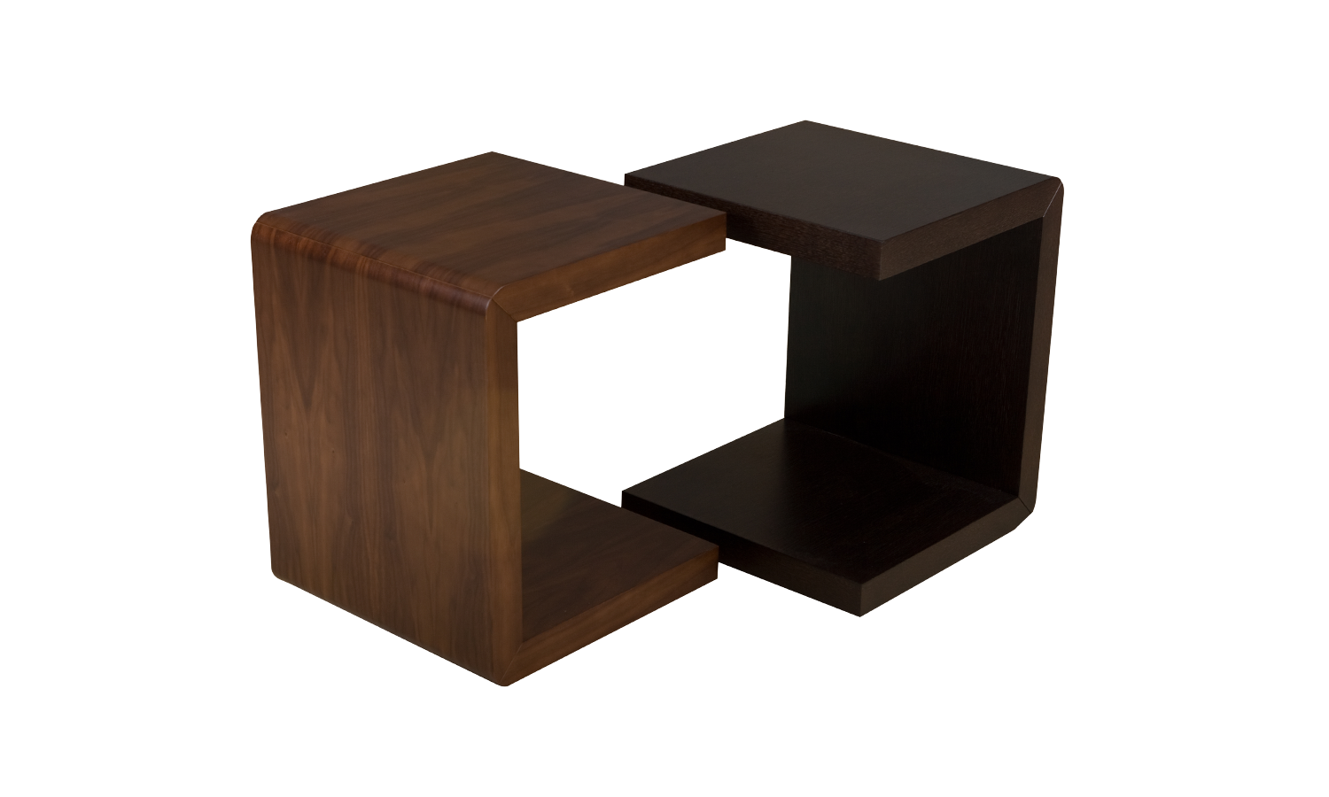 This side table features a wood veneer top available in oak with Espresso finish or walnut with Cognac finish. Other sizes or finishes are available on request.