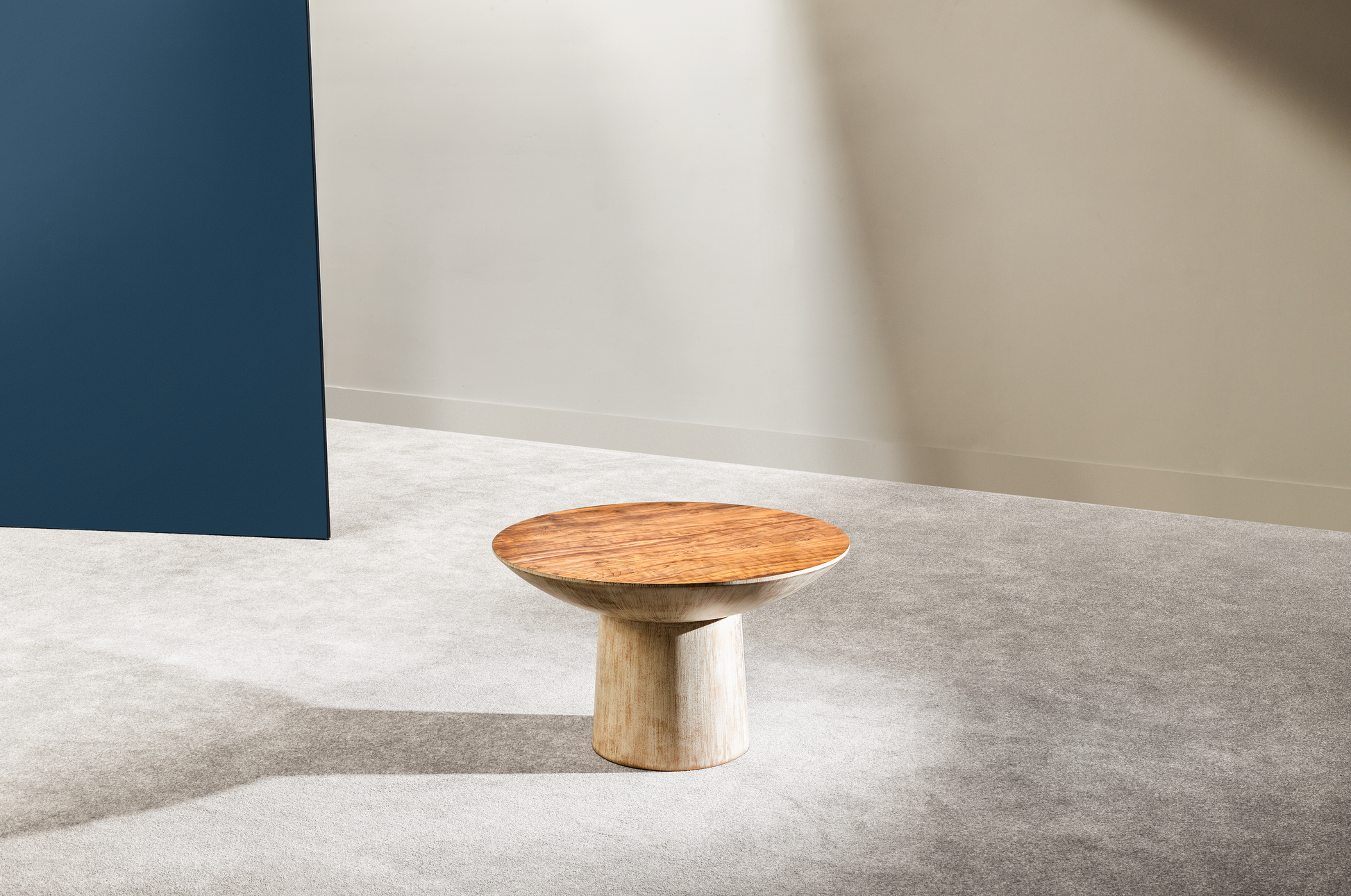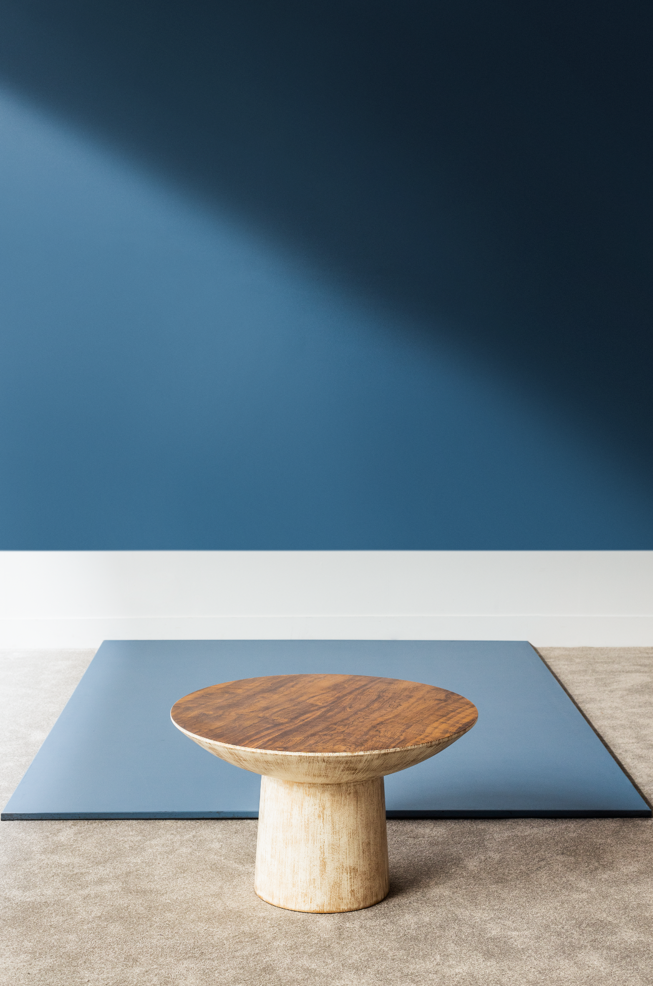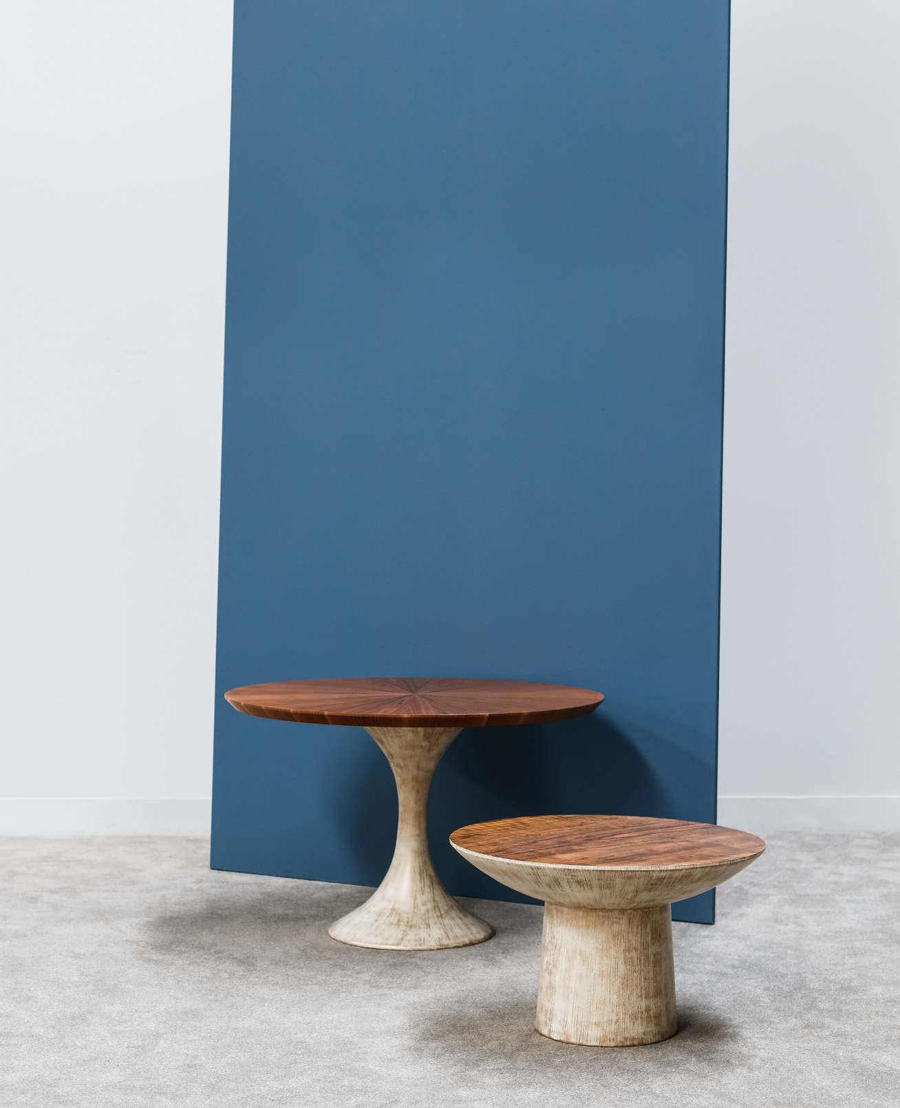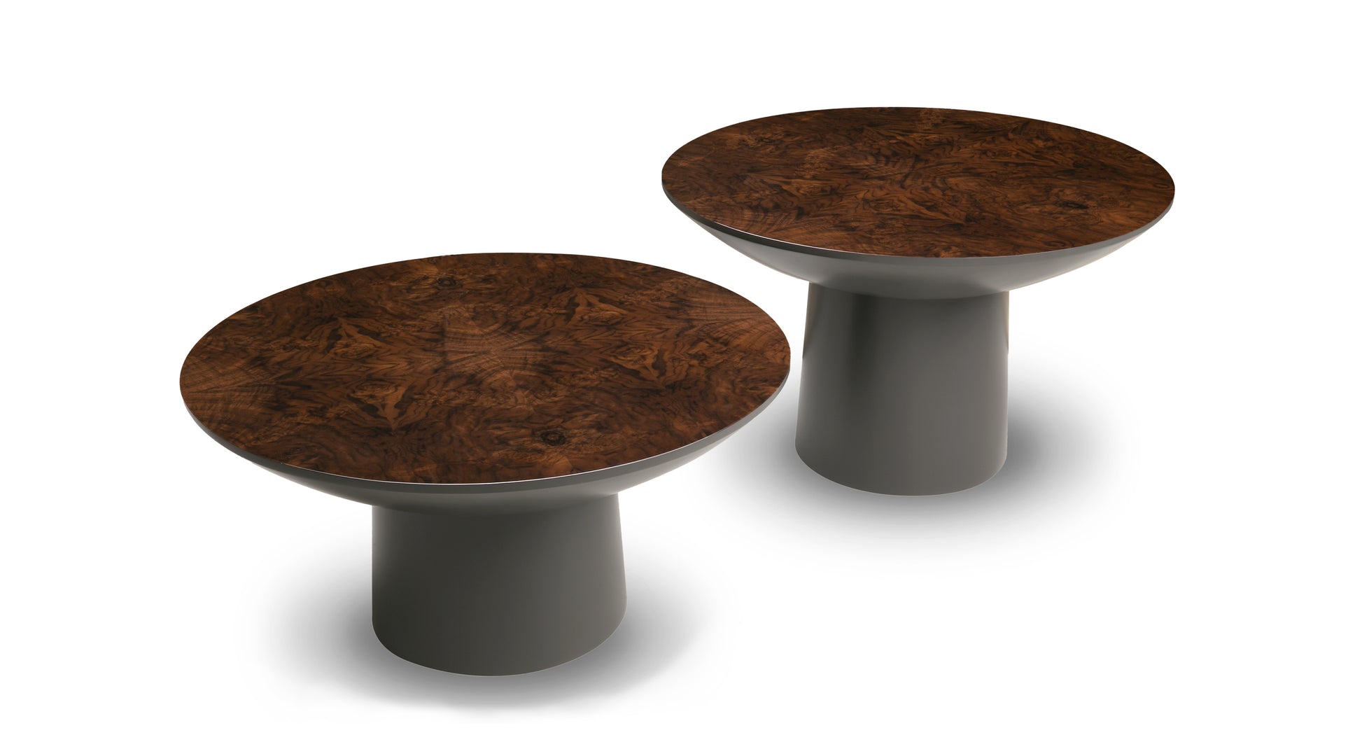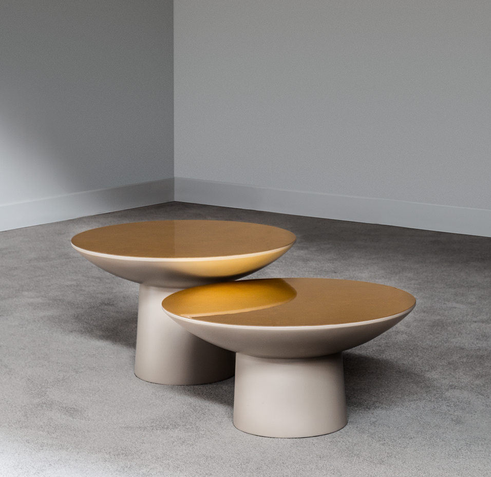 Inspired by Oskar Niemeyer's architecture in Brasilia, this table juxtaposes simple lines with an elegant finish. The two heights allow it to work especially well as a duo.