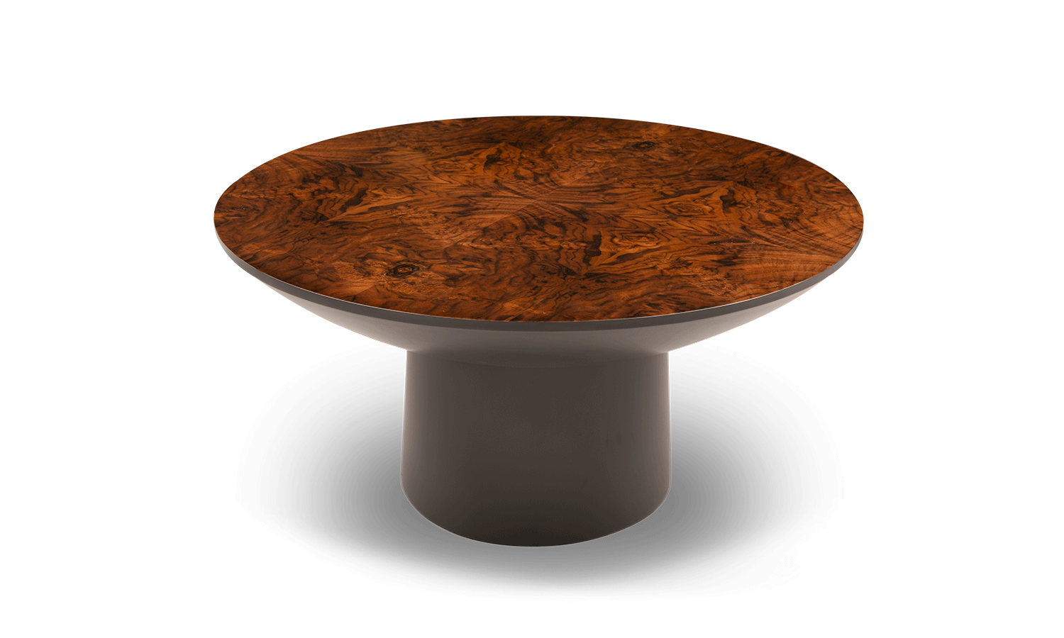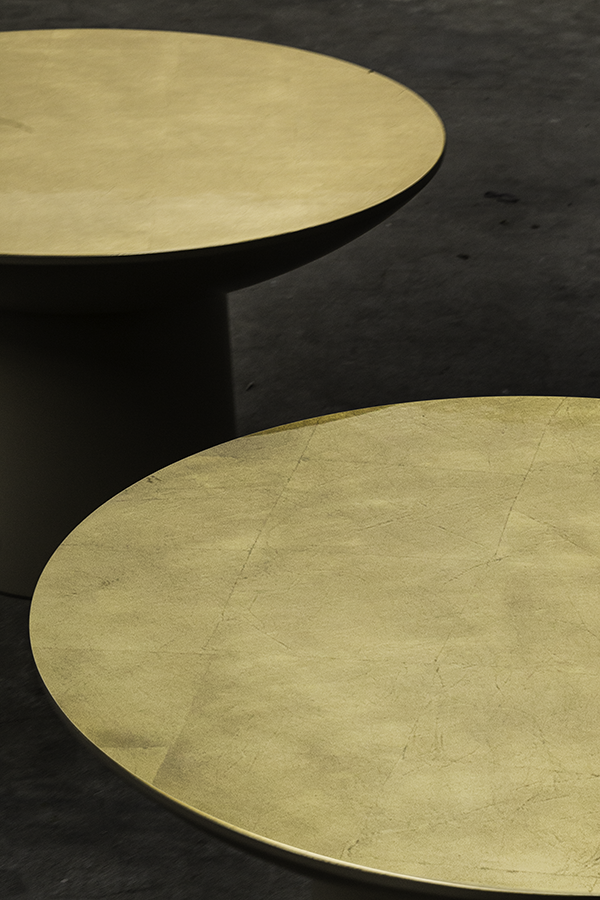 Available with lacquered base with satin finish and a high-gloss top in either gold leaf or burr walnut veneer as well as satin finished imbuia veneer. Oskar is made on request with a its wide range of colours and finishes.