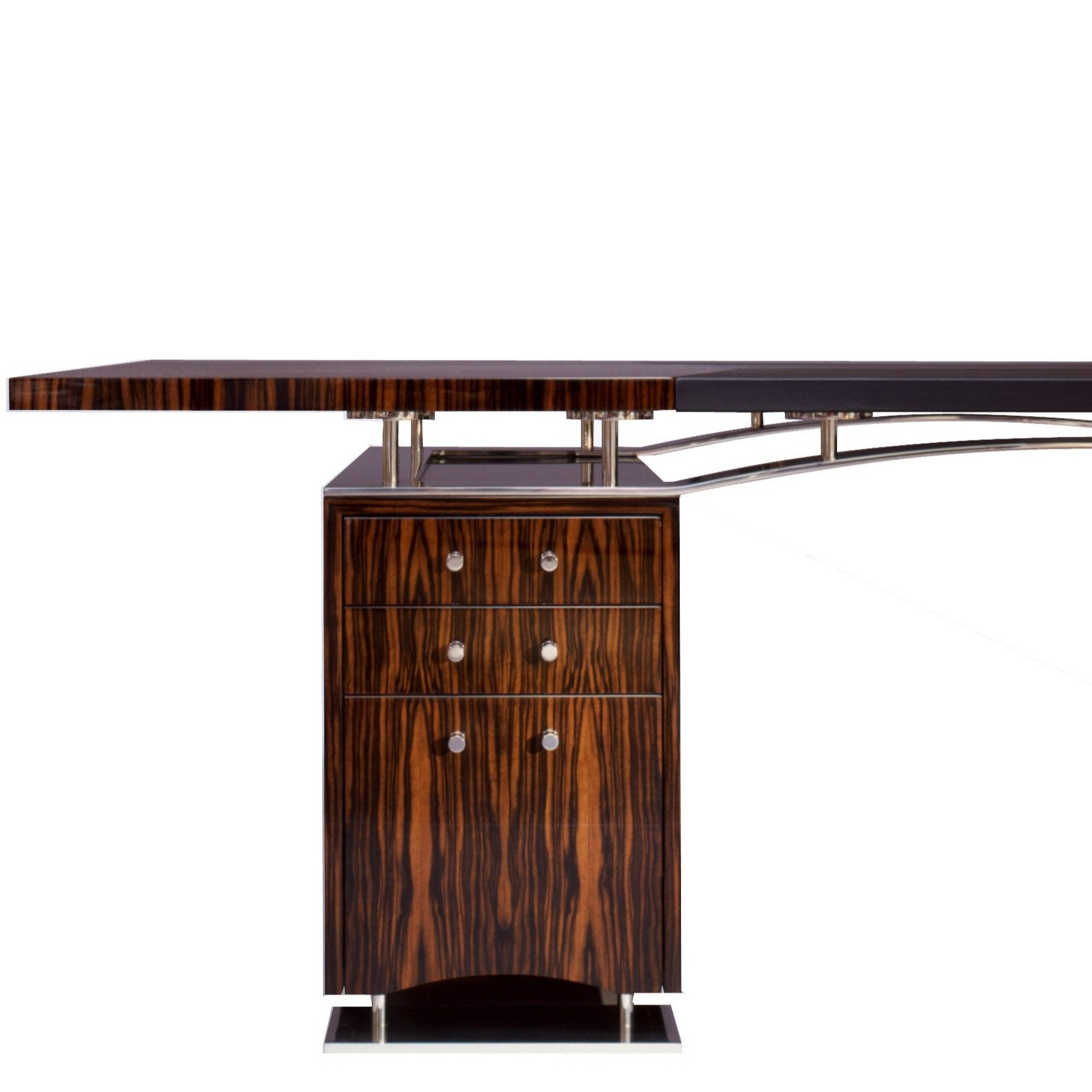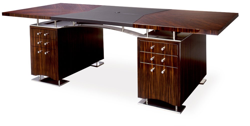 A dignified presence in the home or office, the Partners Desk is an expansive desk for one, or ample enough for two partners to sit opposite one another. Below the desktop, sit two pedestal cabinets: each with two standard drawers and one file drawer, front and back.