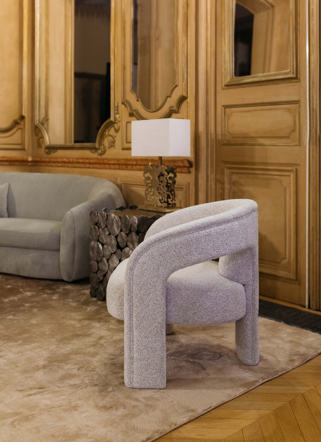 Inspired by our Penelope models, Penny revisits classic curves bringing a more contemporary vibe to become the perfect union of function with form. With refined lines enhanced by a generous seat, its intriguing open backrest is both gracious and playful. This atypical armchair is a welcome addition to living areas, bedrooms and beyond.