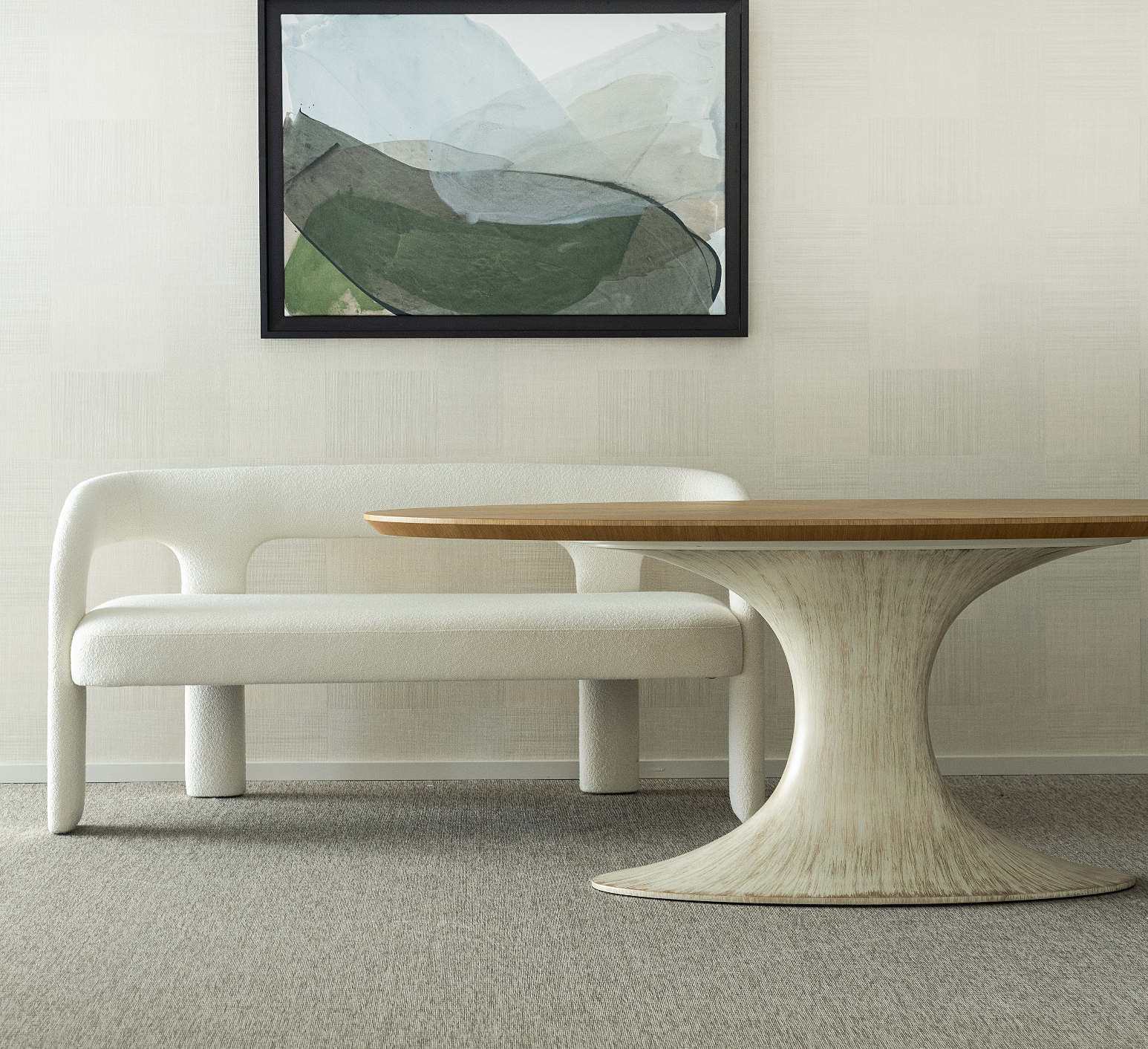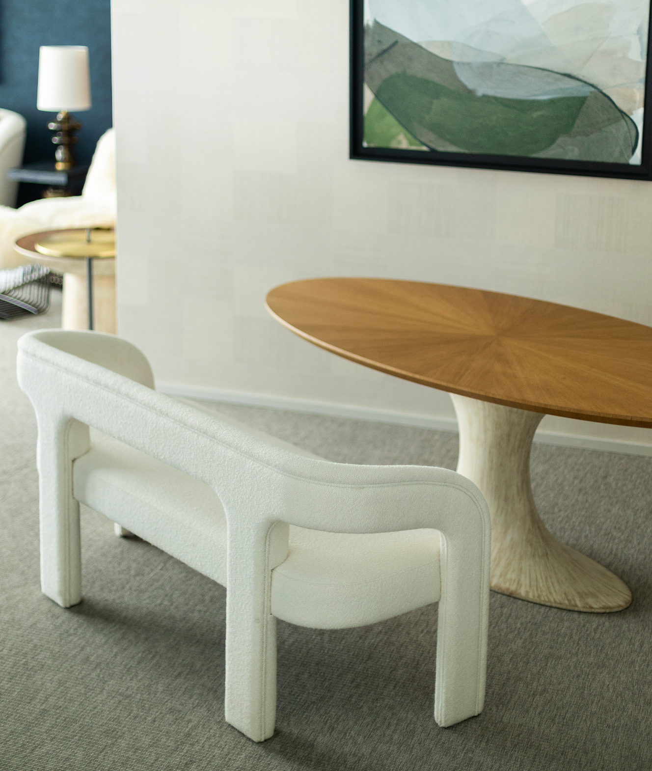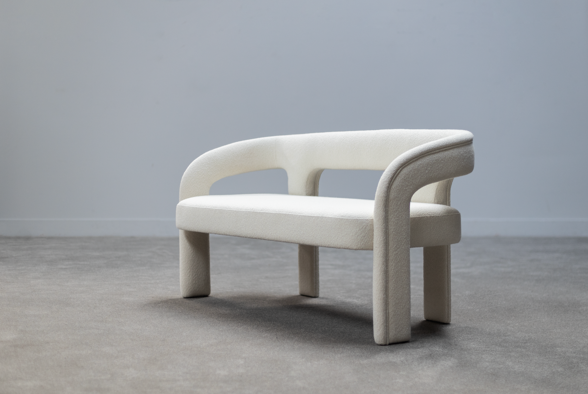 Inspired by our Penelope models, Penny revisits classic curves bringing a more contemporary vibe to become the perfect union of function with dorm. With refined lines enhanced by a generous seat, its intriguing open backrest is both gracious and playful. This atypical bench brings a touch of originality not only to the dining room but to diverse areas like entryways, sunrooms and more.