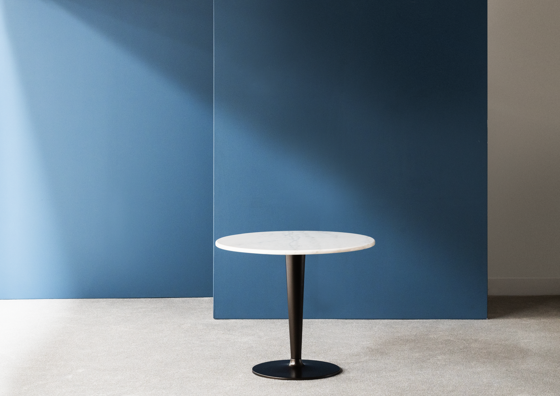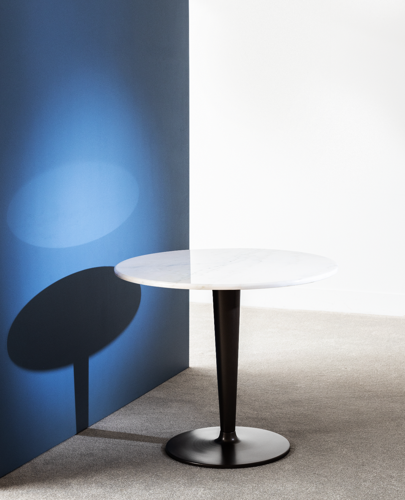 An organic wood texture combine with the strength of enamelled iron and the elegance of brass to make a sophisticated and elegant table that complements any space.