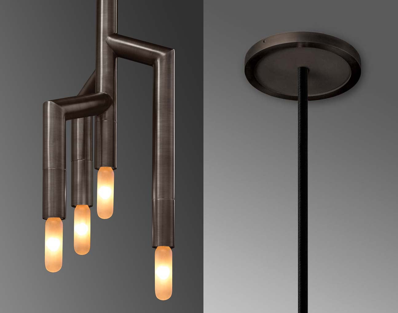 The Rameau Pendant is machined from solid brass. All parts are hand polished and patina'd.