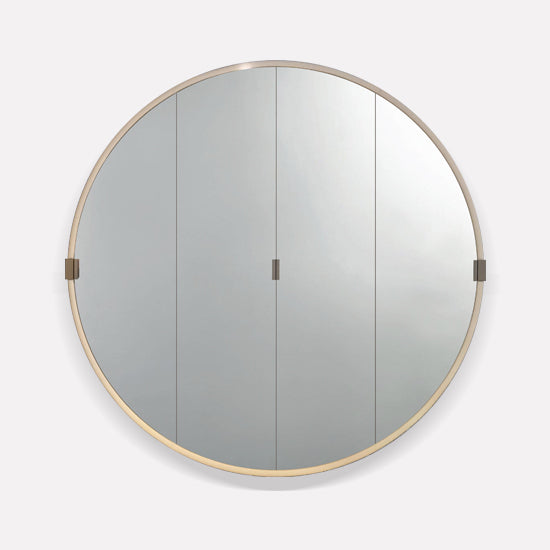 Circles have no beginning or end. They represent the eternal whole and in every culture are an archetypical symbol for the sun, the earth and the moon. This cabinet wrapped in leather has an LED halo all around and allows to storage glasses, plates and decorative items to be used as a buffet or a bar.
