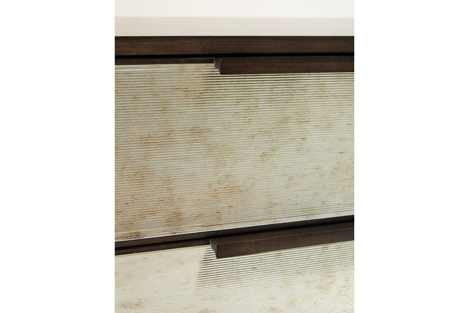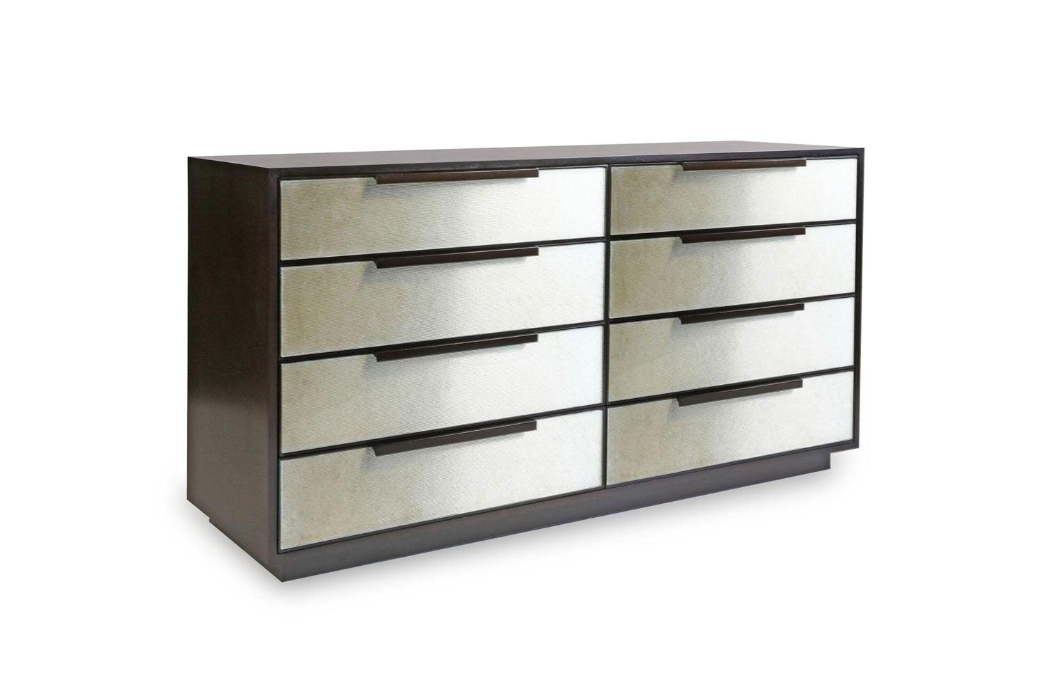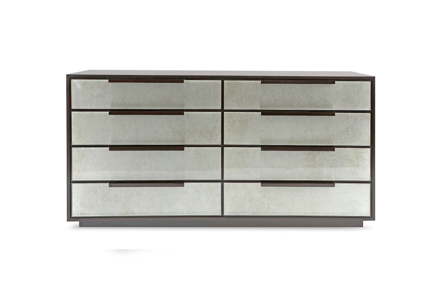 CASEGOODS FEATURE: All Erinn V. case goods are made to order in California using only the finest woods and metals, resulting in a richness of materials. Erinn V.’s modern-classic designs are highlighted by a range of fine details: hand-hammered hardware created specifically for each piece, hand-silvered mirrors in the most unique finishes, and sophisticated finishes such as gold leaf, which is gently applied and then glazed. All Erinn V. tables and cabinets are constructed using the same methods employed by fine European craftsmen for durability and unparalleled style, with modern technology like slow-close hardware on drawers and hinges. Erinn V. furniture is customizable for a one-of-a-kind feel, poised to be an heirloom of the future.