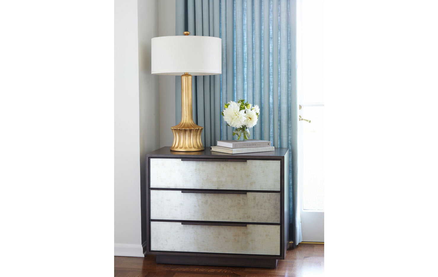 CASEGOODS FEATURE: All Erinn V. case goods are made to order in California using only the finest woods and metals, resulting in a richness of materials. Erinn V.’s modern-classic designs are highlighted by a range of fine details: hand-hammered hardware created specifically for each piece, hand-silvered mirrors in the most unique finishes, and sophisticated finishes such as gold leaf, which is gently applied and then glazed. All Erinn V. tables and cabinets are constructed using the same methods employed by fine European craftsmen for durability and unparalleled style, with modern technology like slow-close hardware on drawers and hinges. Erinn V. furniture is customizable for a one-of-a-kind feel, poised to be an heirloom of the future.