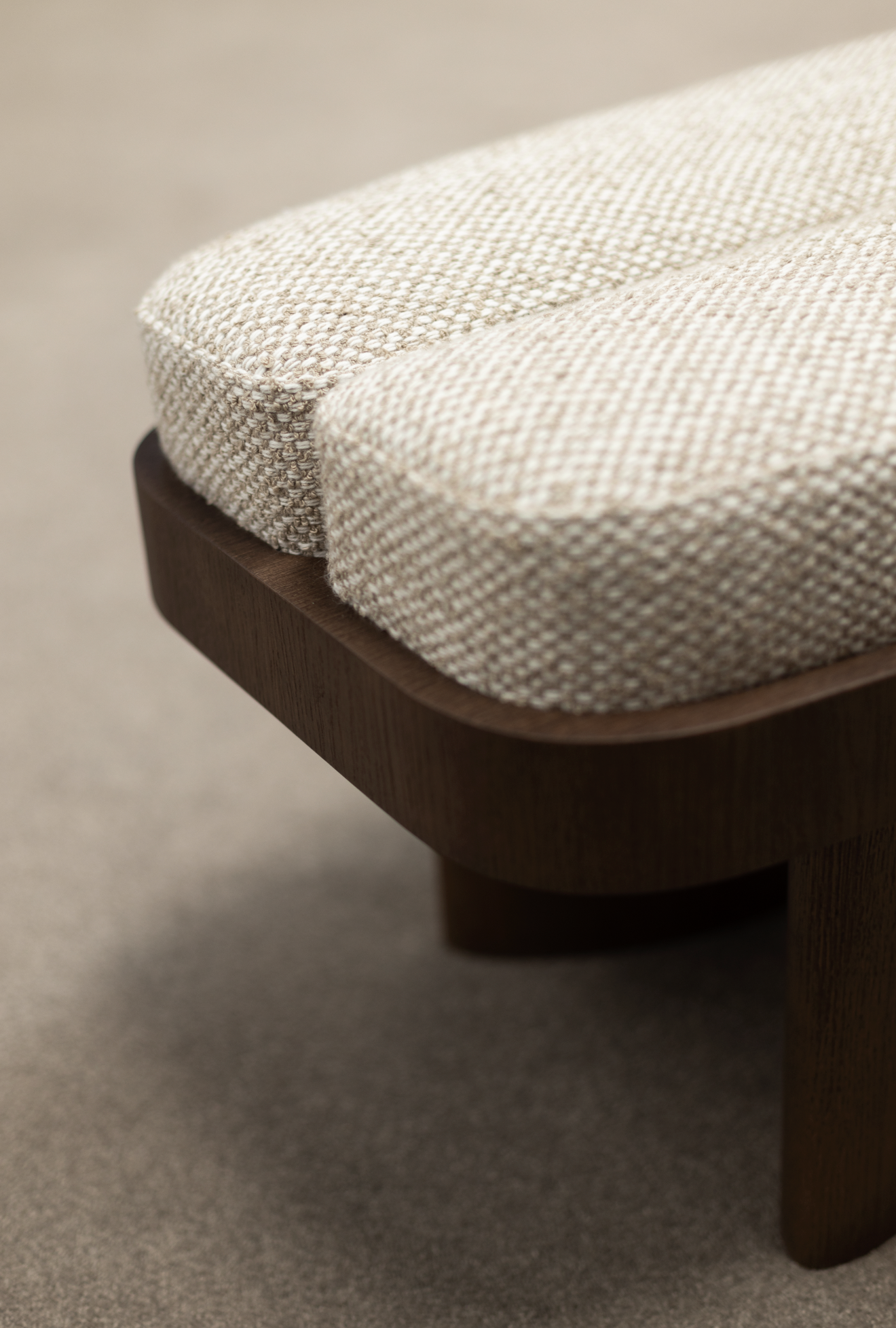 This bench has a solid wood structure and legs in standard finishes. Cat I-VI fabrics and leathers ( 3m / un.) possible in customer’s own material.Also available in coffee and side table versions.