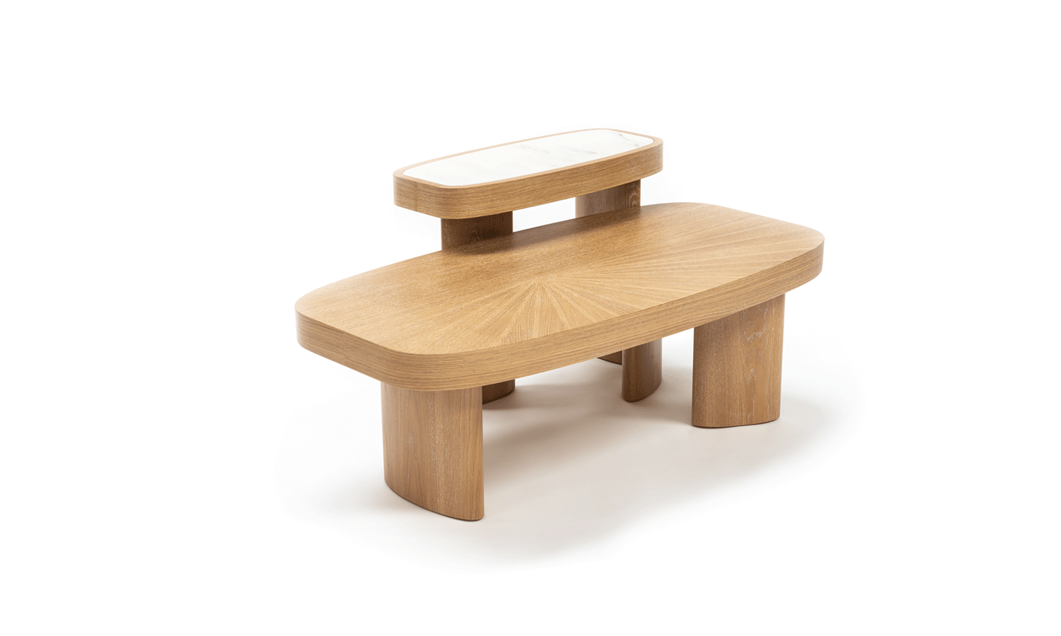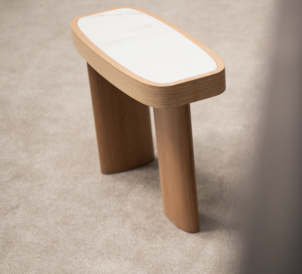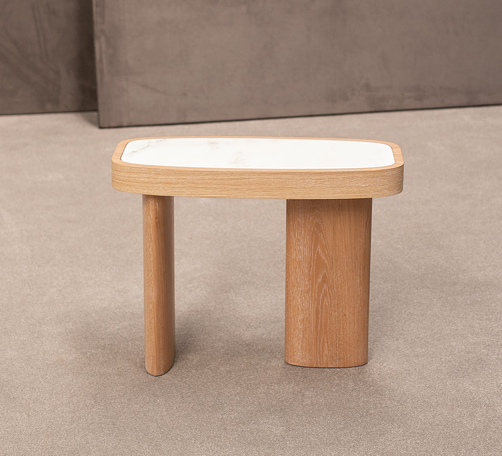 This oak veneered table may is also available with a marble insert in its coffee and side table options. Other finishes and dimensions are available on request.