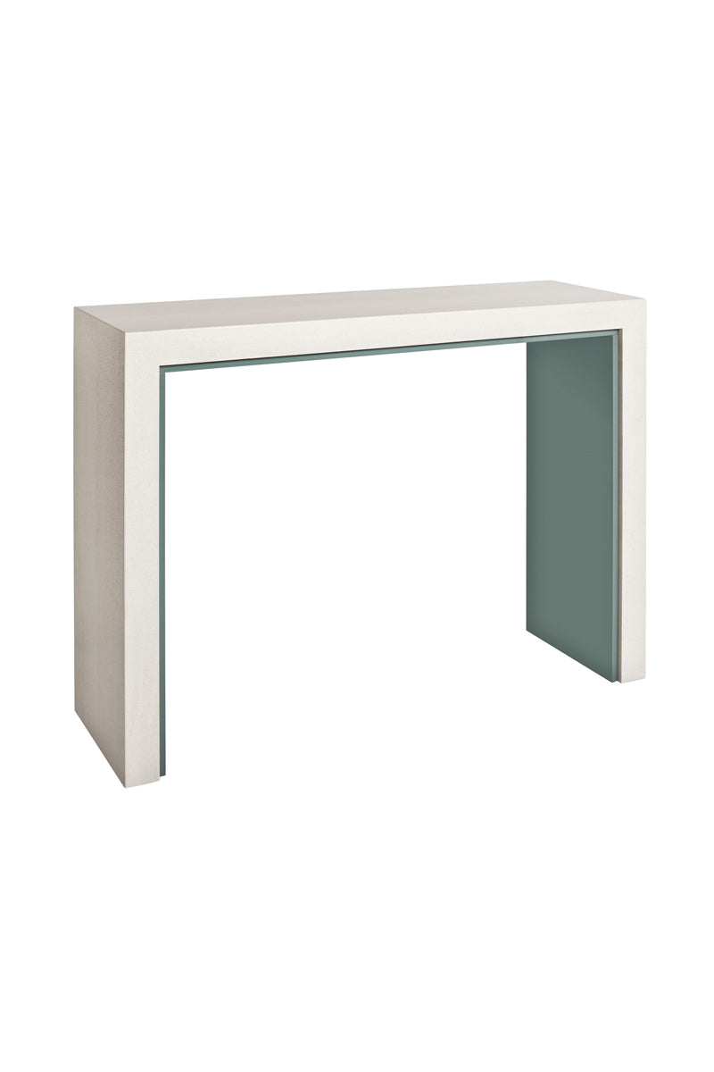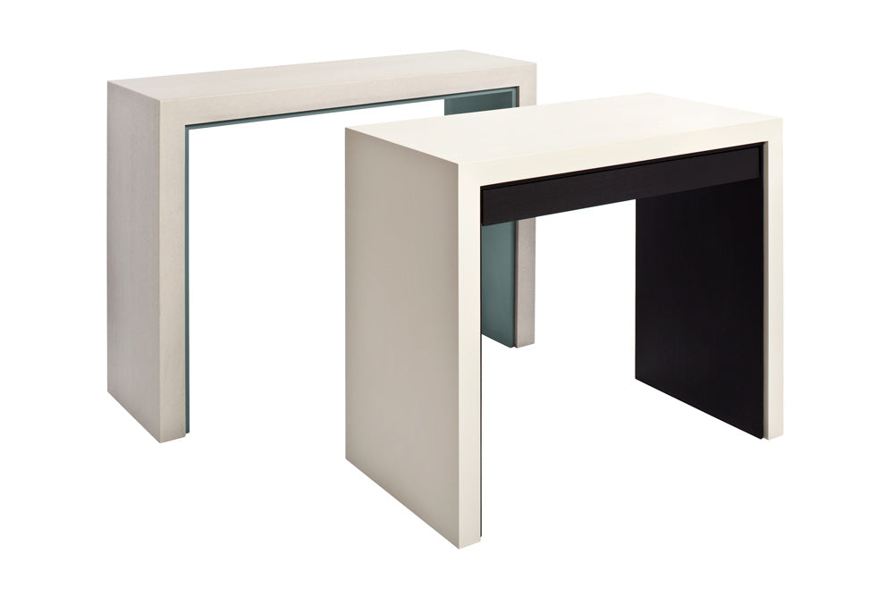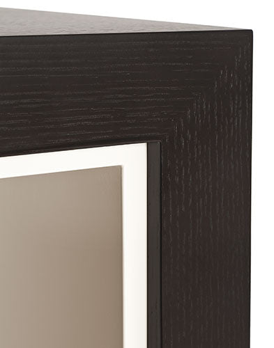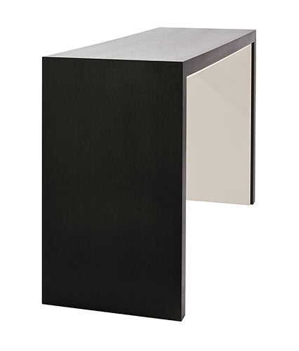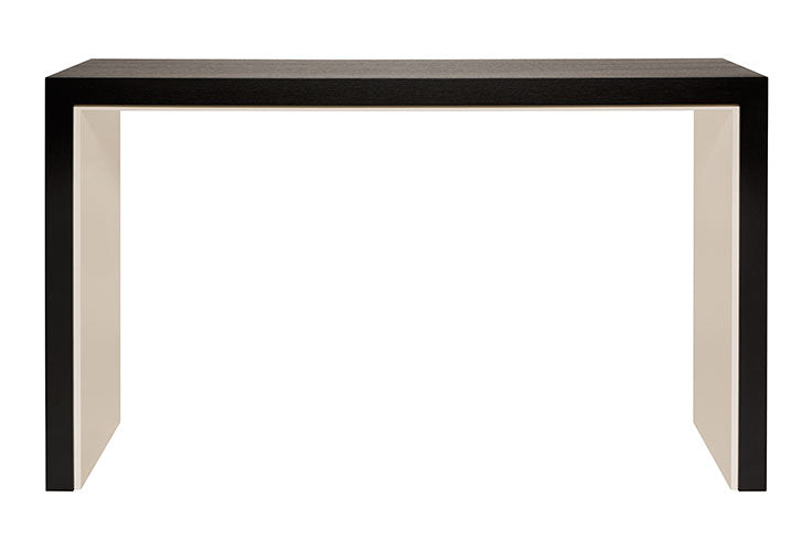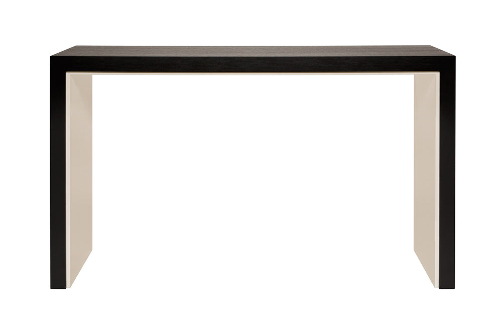 contemporary console with exterior wood finish and lacquer interior finish. reverse option available. no drawer.