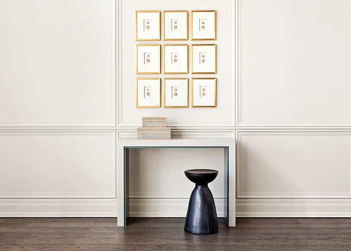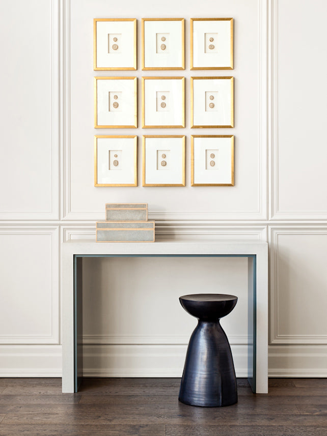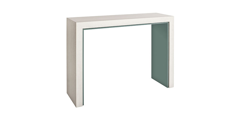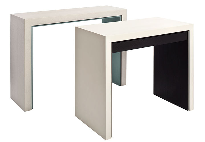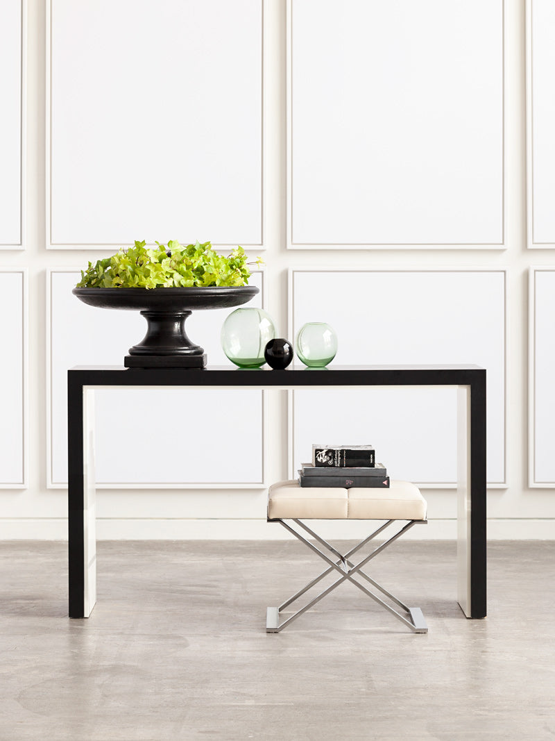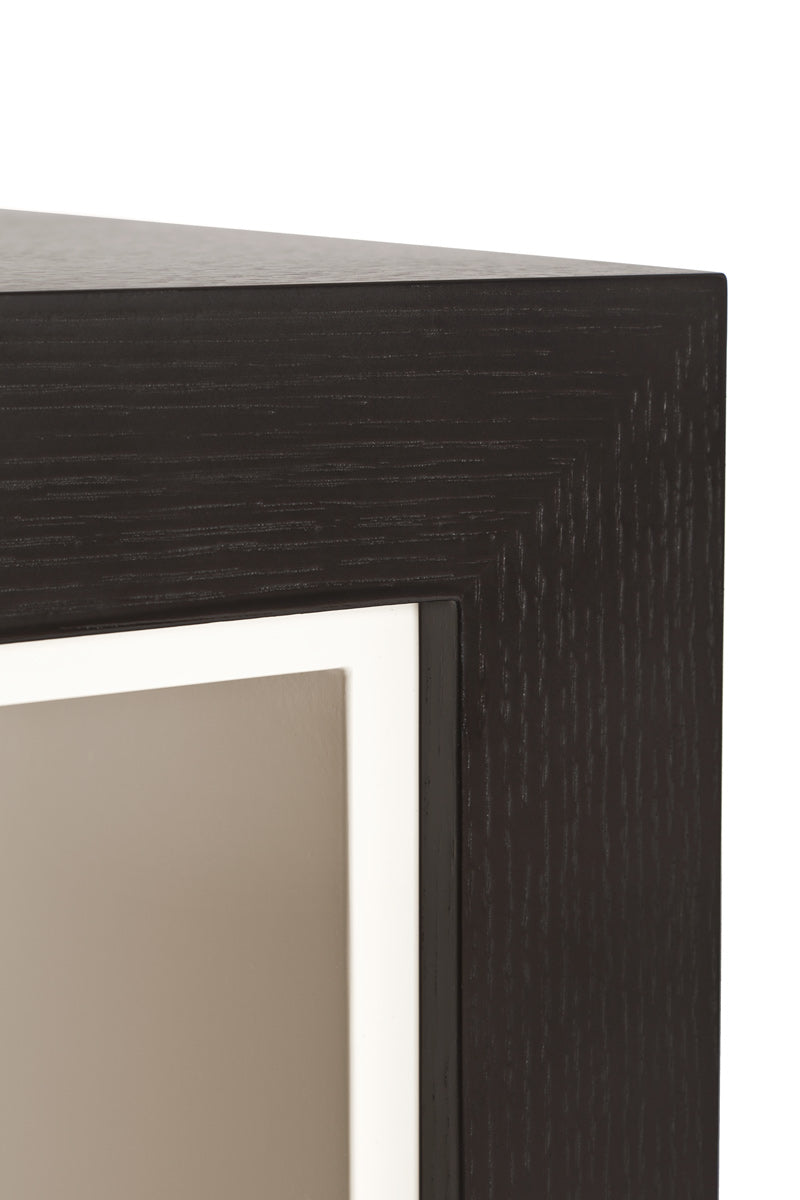 contemporary console with exterior wood finish and lacquer interior finish. reverse option available. no drawer.