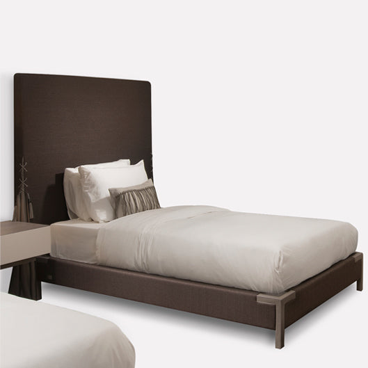 Inspired by the Shanghainese interpretation of Art Deco, this bed represents the very essence of embracing East-meets-West aesthetics in contemporary style and comfort. The simplification of geometric lines is paired with a modern twist of tassels and revealing pleats on the corners as design elements to coalesce into a timeless luxury bed.