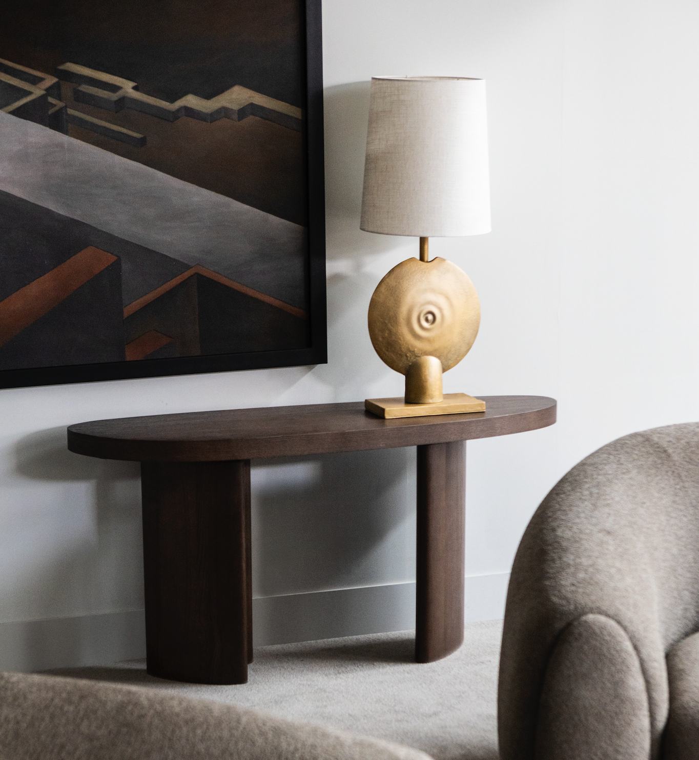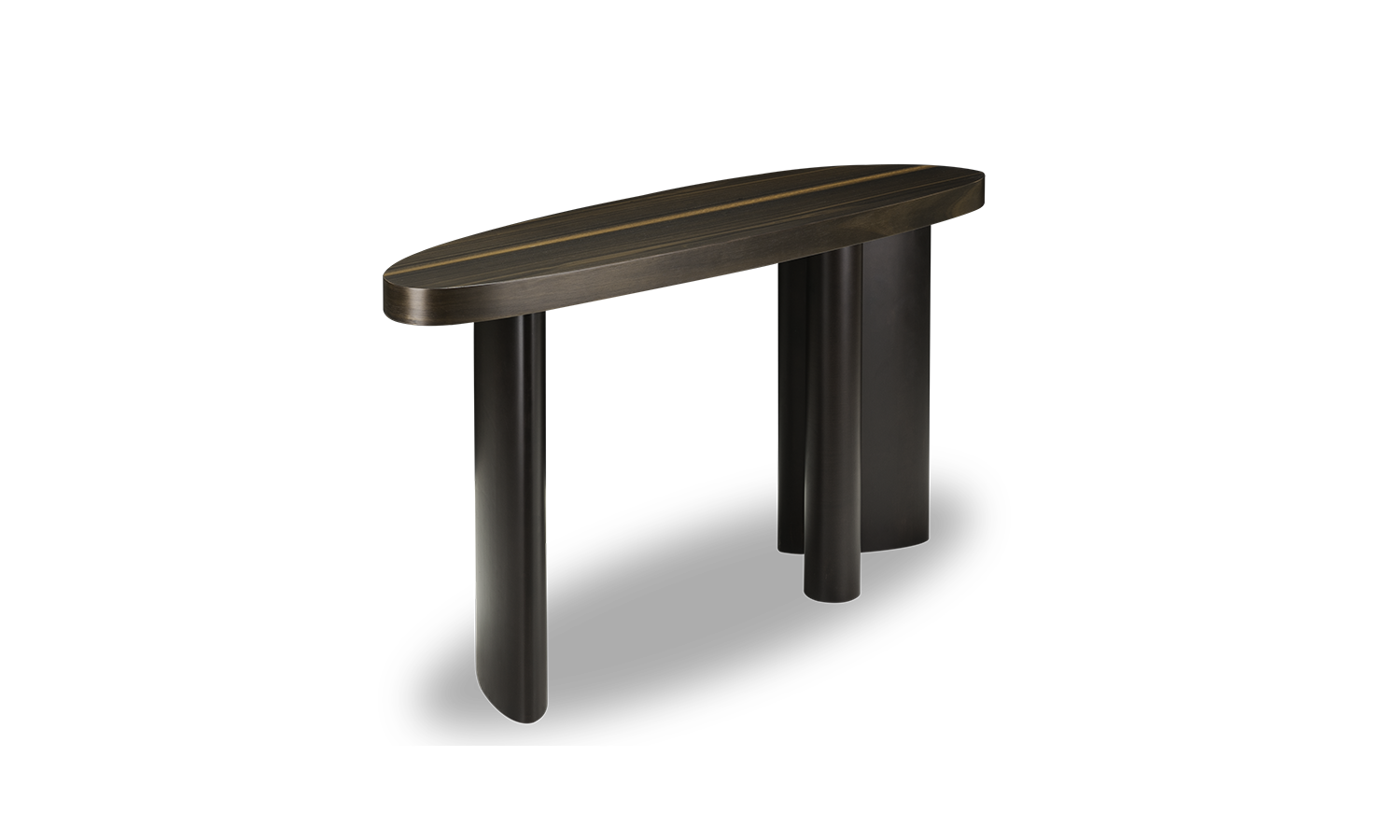 The Eucalyptus veneered top adds texture and visually lightens the weight of the brushed ash legs. Available in Dining, Console and Cocktail table versions. Other finish options and sizing are available on request.