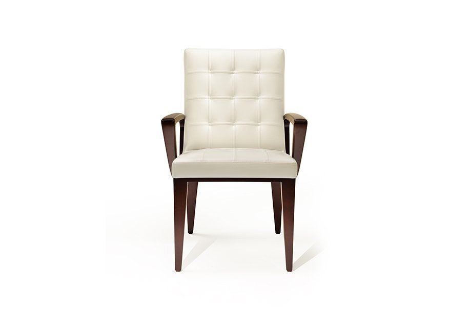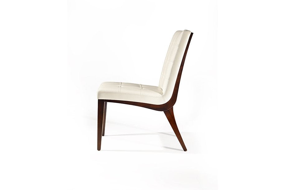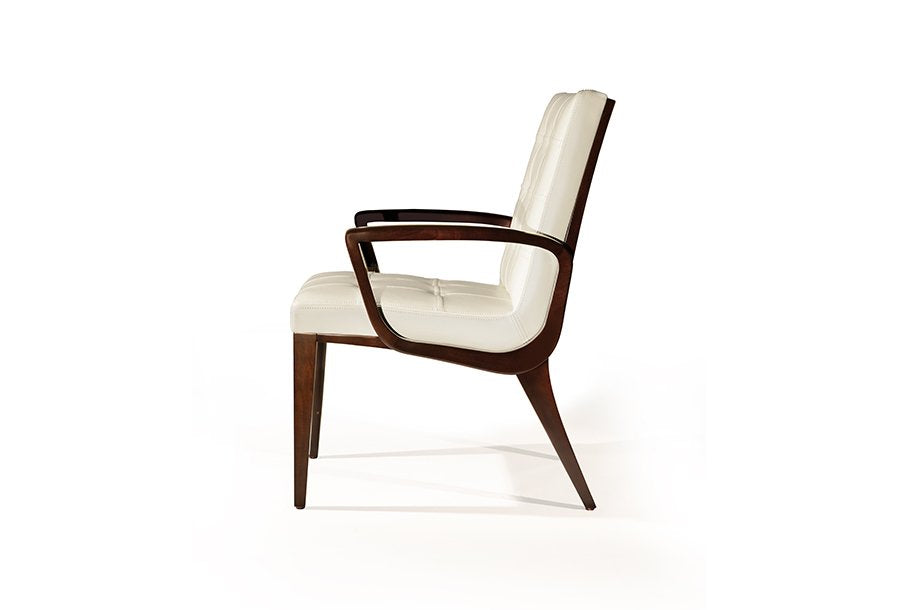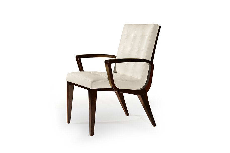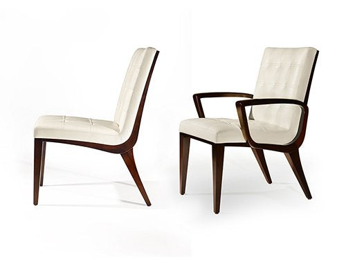 The Sonata Chairs provide a rhythmic cadence around the dining table. The precision of the multi-planar seat back combines with the form fitting upholstered ribbed and tufted upholstered seat for hours of comfort and conversation.