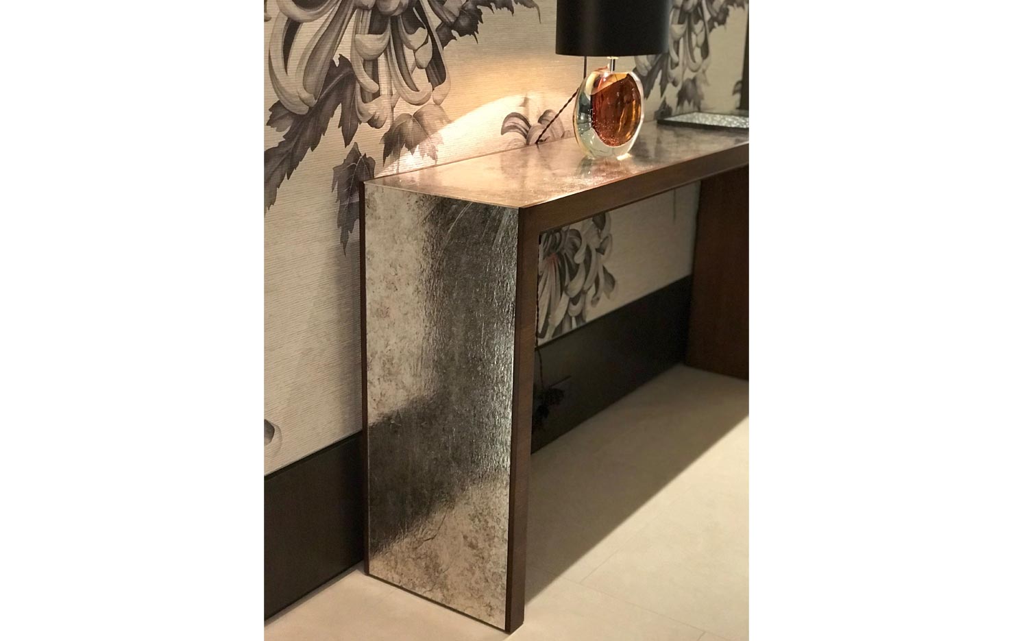 CASEGOODS FEATURE: All Erinn V. case goods are made to order in California using only the finest woods and metals, resulting in a richness of materials. Erinn V.’s modern-classic designs are highlighted by a range of fine details: hand-hammered hardware created specifically for each piece, hand-silvered mirrors in the most unique finishes, and sophisticated finishes such as gold leaf, which is gently applied and then glazed. All Erinn V. tables and cabinets are constructed using the same methods employed by fine European craftsmen for durability and unparalleled style, with modern technology like slow-close hardware on drawers and hinges. Erinn V. furniture is customizable for a one-of-a-kind feel, poised to be an heirloom of the future.