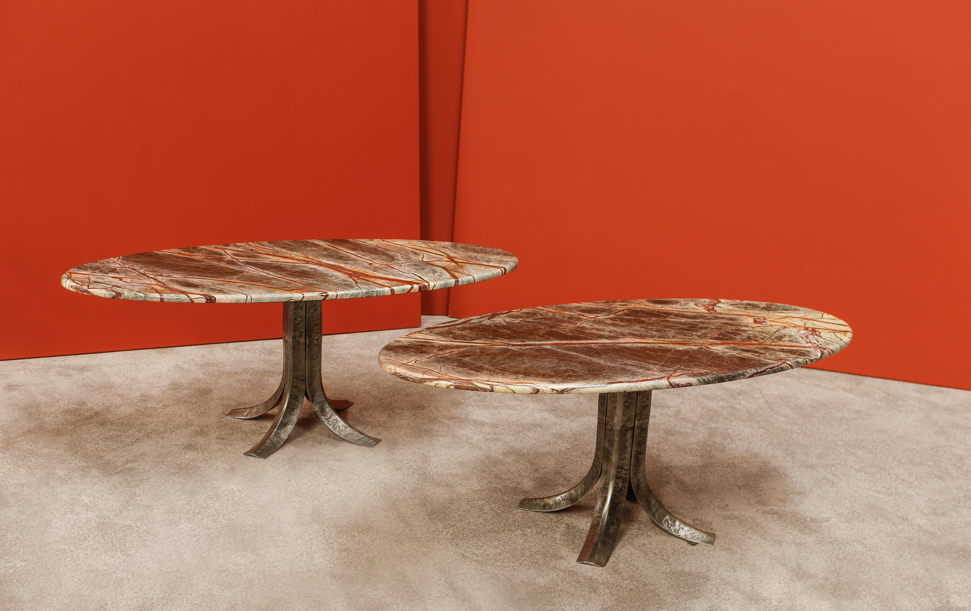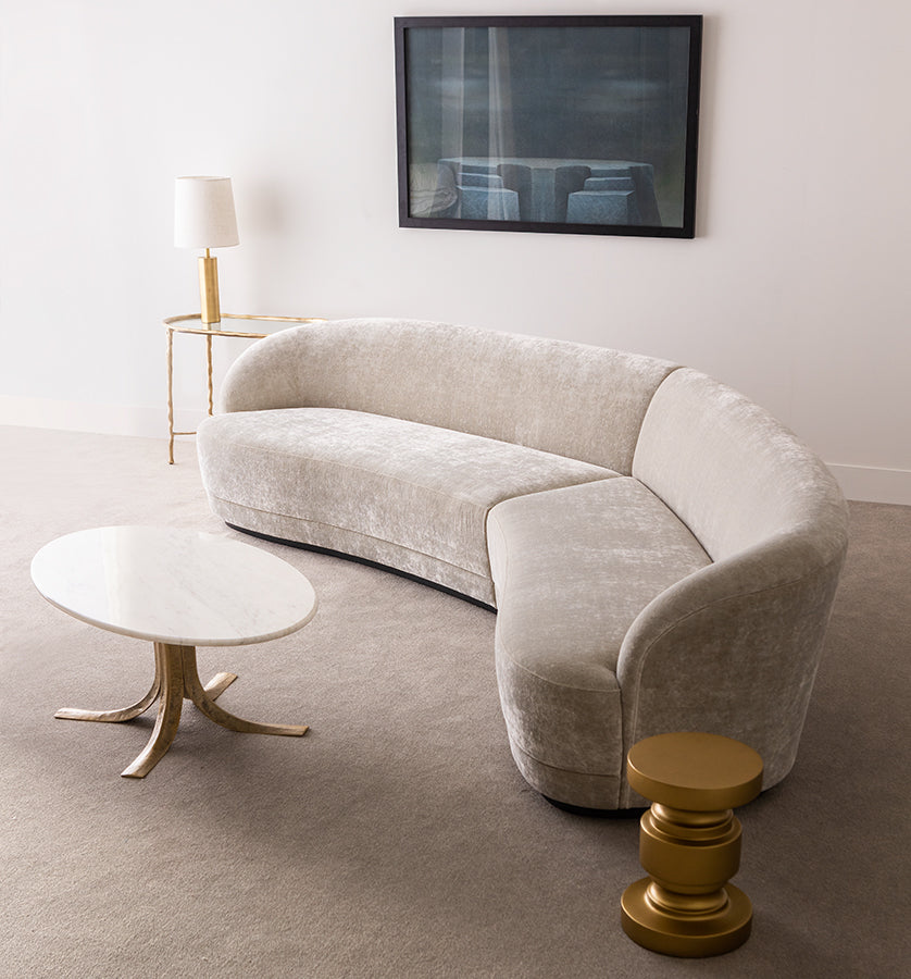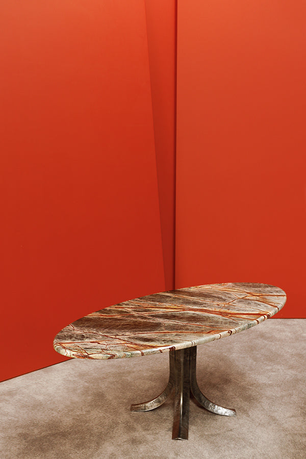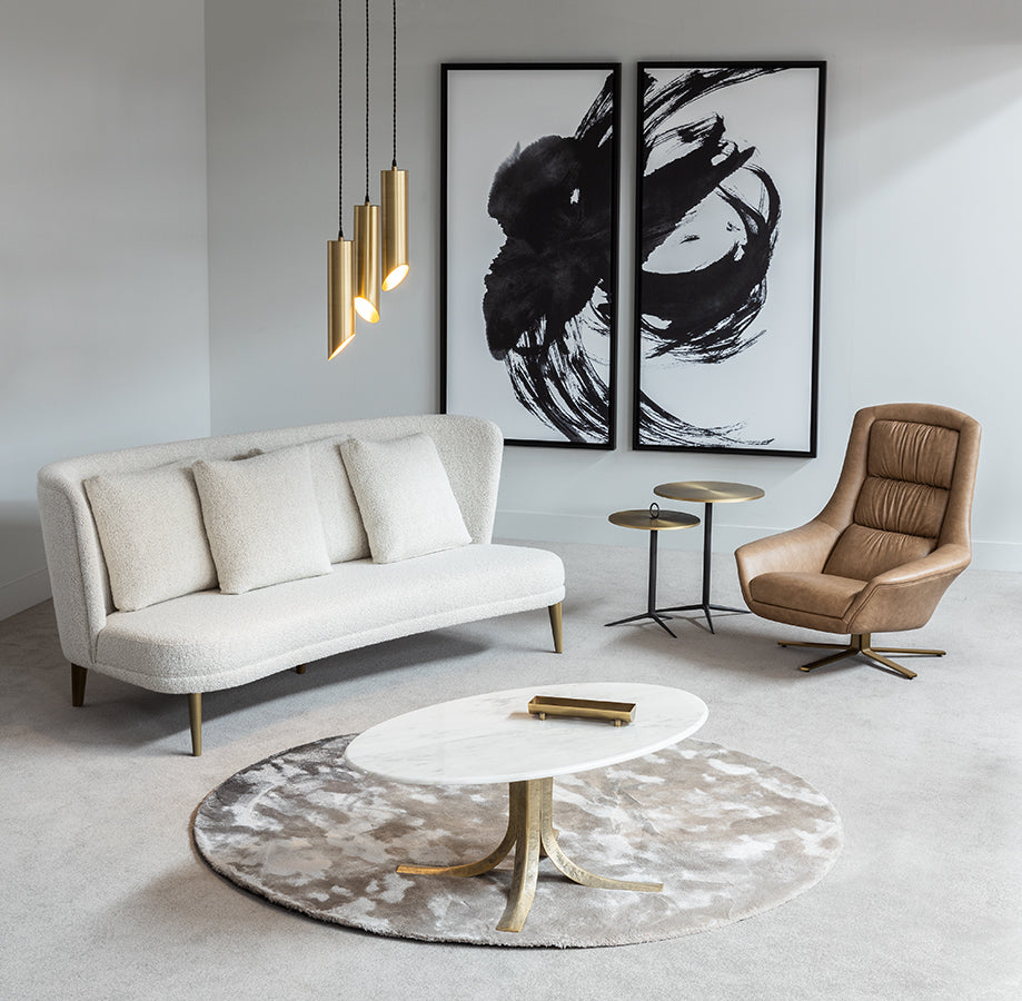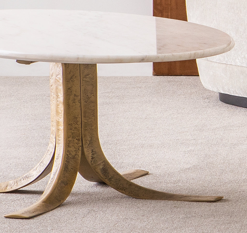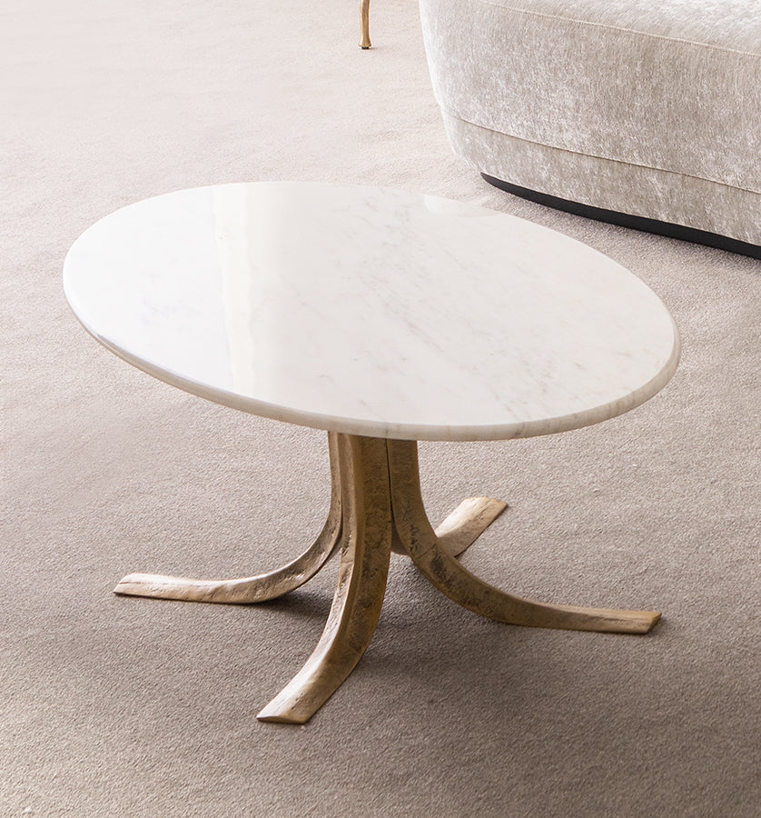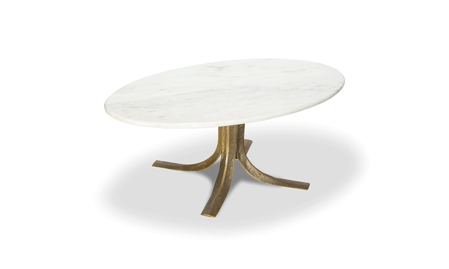 Its cast aluminium base, hand-sculpted by craftsmen with ancestral know-how, contrasts with the dynamism of its oval top. This cocktail table adapts perfectly to a variety of spaces and projects, and combines perfectly with most of our sofas, armchairs, and poufs.
