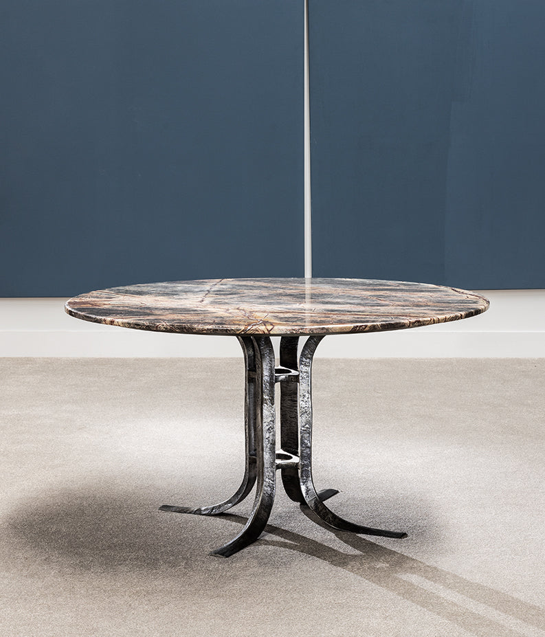 Its cast aluminium base, hand-sculpted by craftsmen with ancestral know-how, contrasts with the dynamism of its oval top. The two versions of the Talos dining table enables it to adapt to any space. Most of our chair ranges adapt perfectly to this dining table.