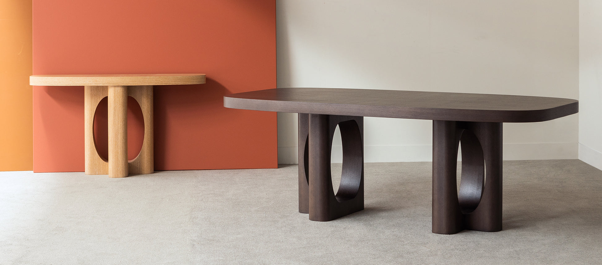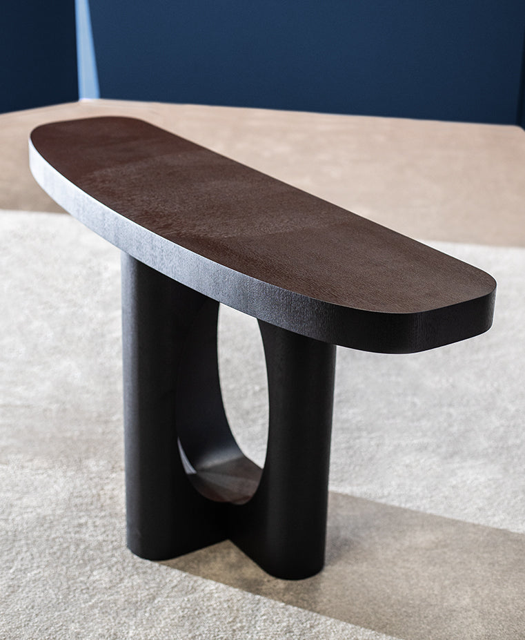 Taxco’s hand-sculpted base and cut-out curves give unique visual interest in a simple form. Available in dining or console tables, it comes in a variety of finishes and may be customised for a perfect fit.
