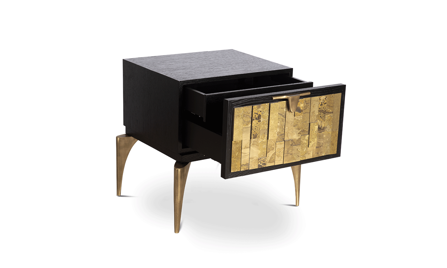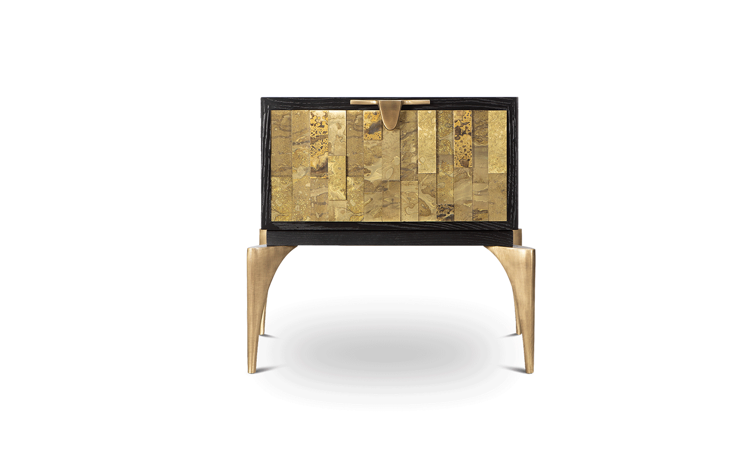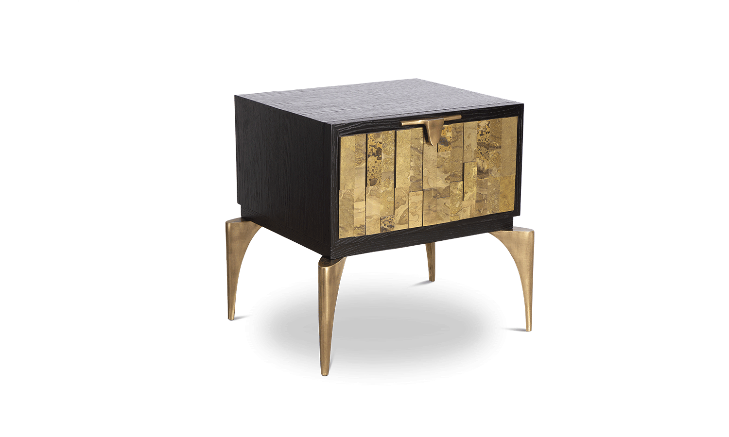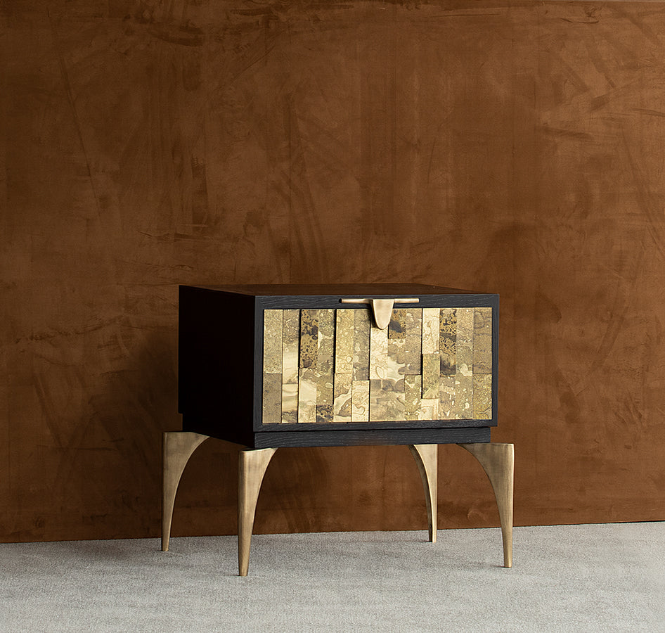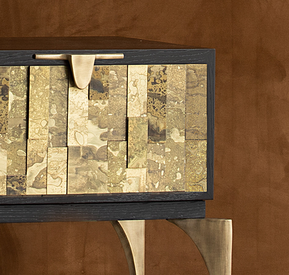Reminiscent of the Aztec pyramids at Tenochtitlan, Tenoch brings a dazzling golden touch to your space. Available as a cabinet, a sideboard, an AV module and two bedside table versions, this range adapts to a variety of functions.