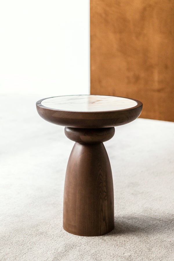 Théa's sculpted wood base and marble insert top makes this elegant piece the perfect occasional table for any space.