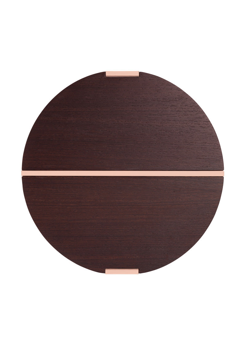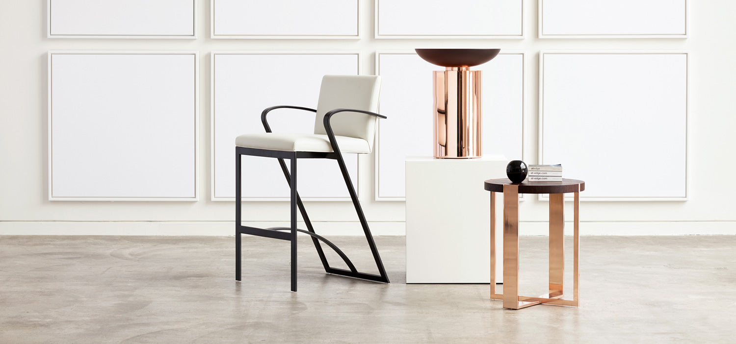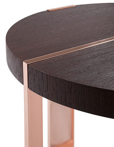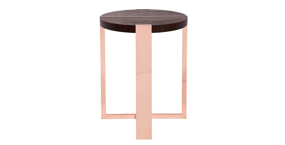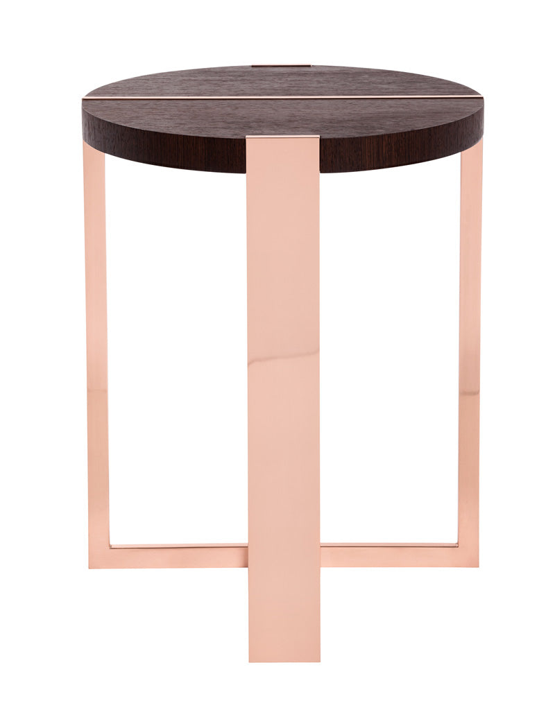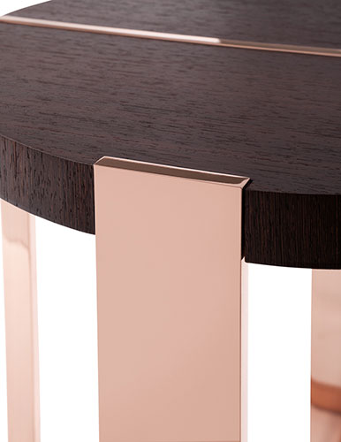 depending upon from which angle it is viewed the “trocadero” table reveals a decidedly different persona. its metal frame solidly grips the top while at the same time bisecting it.