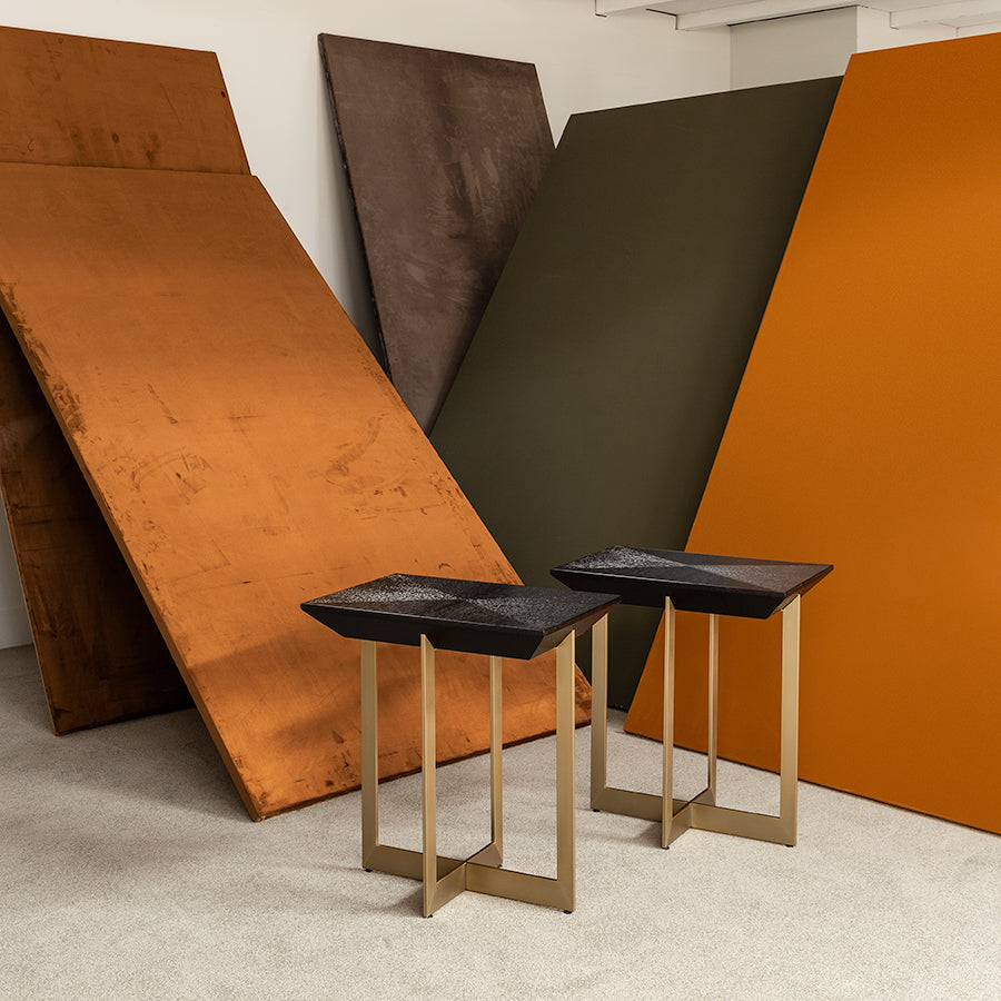 The brushed steel base of Tulum is a nice contrast to its diamond veneer top and makes for a sleek, contemporary table.