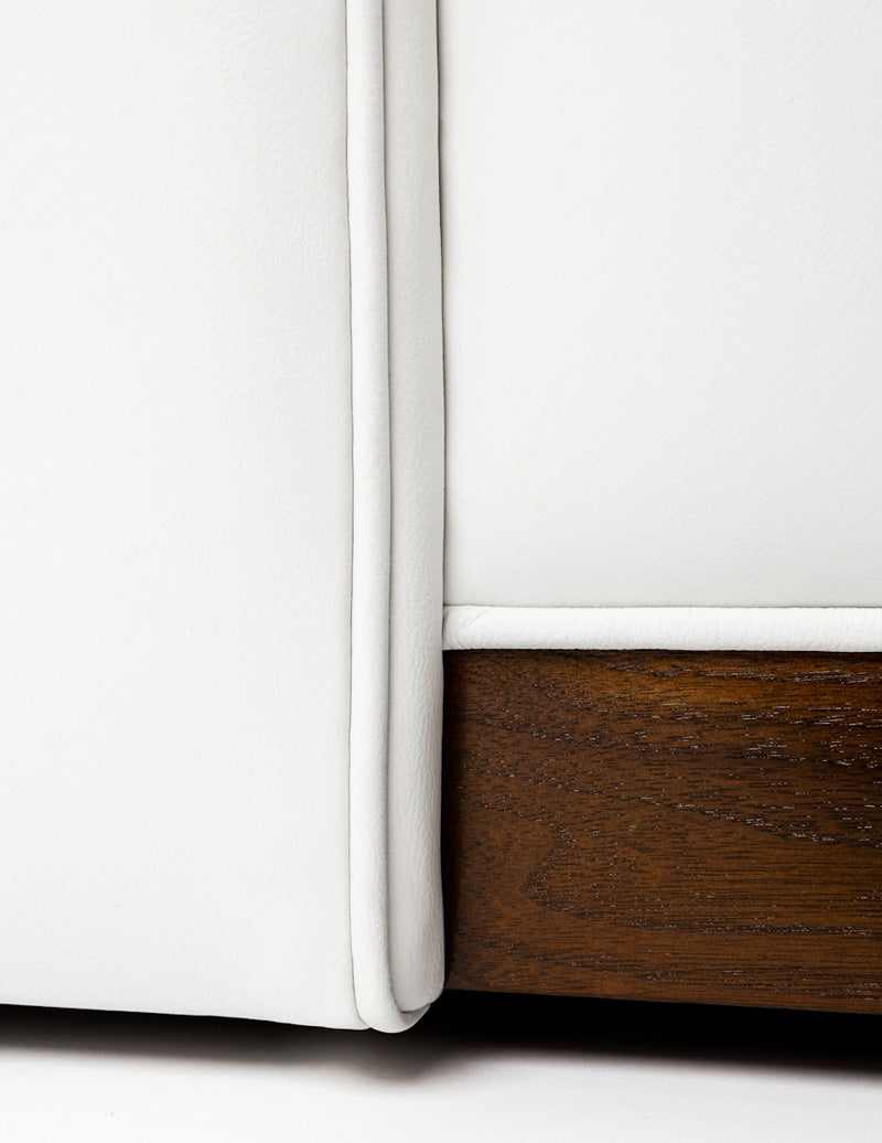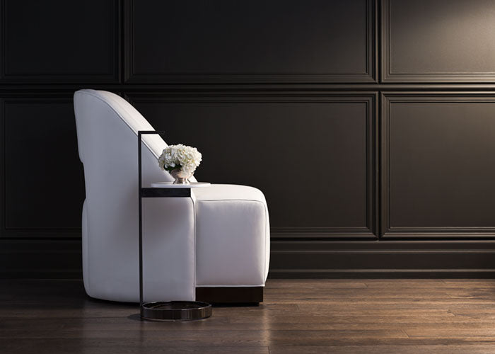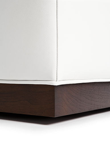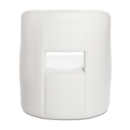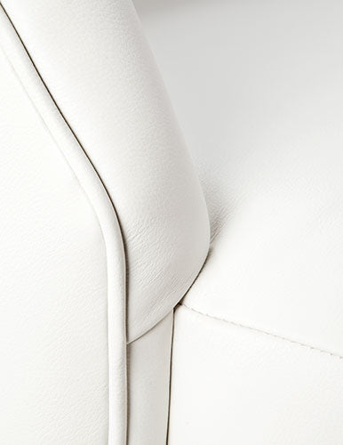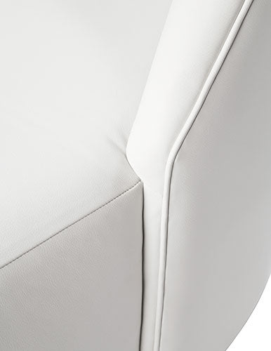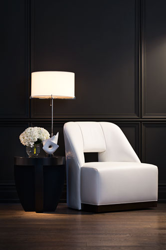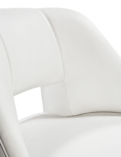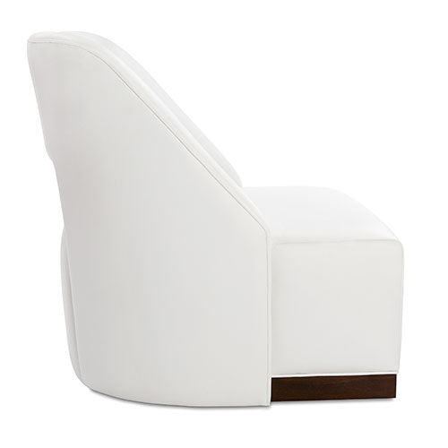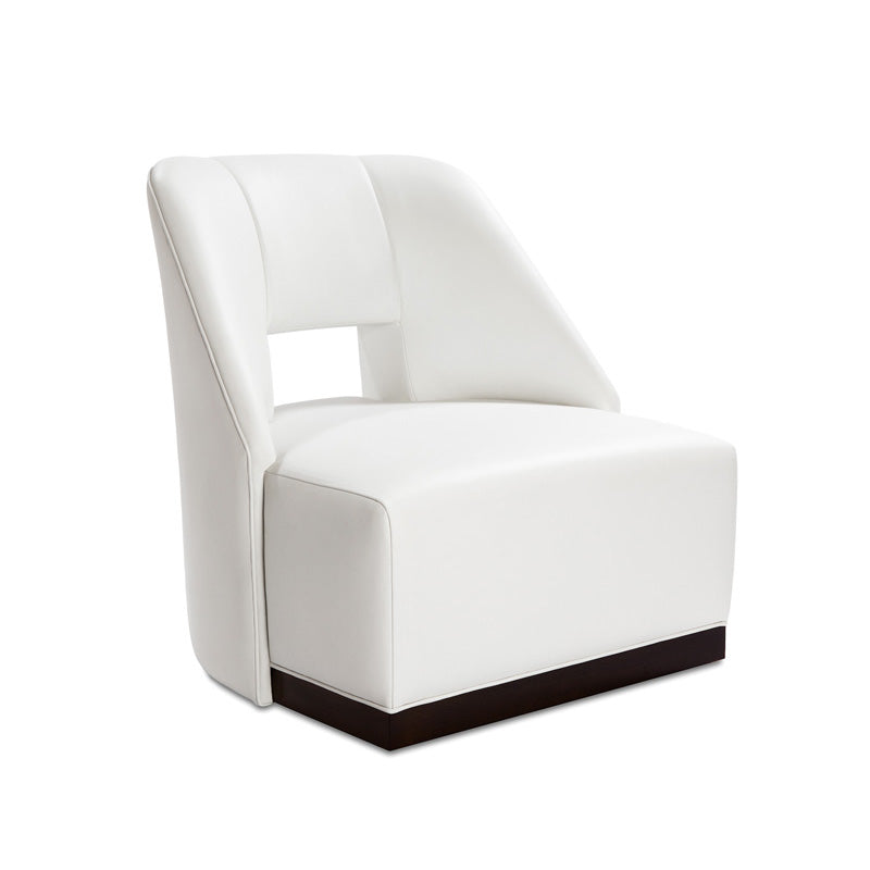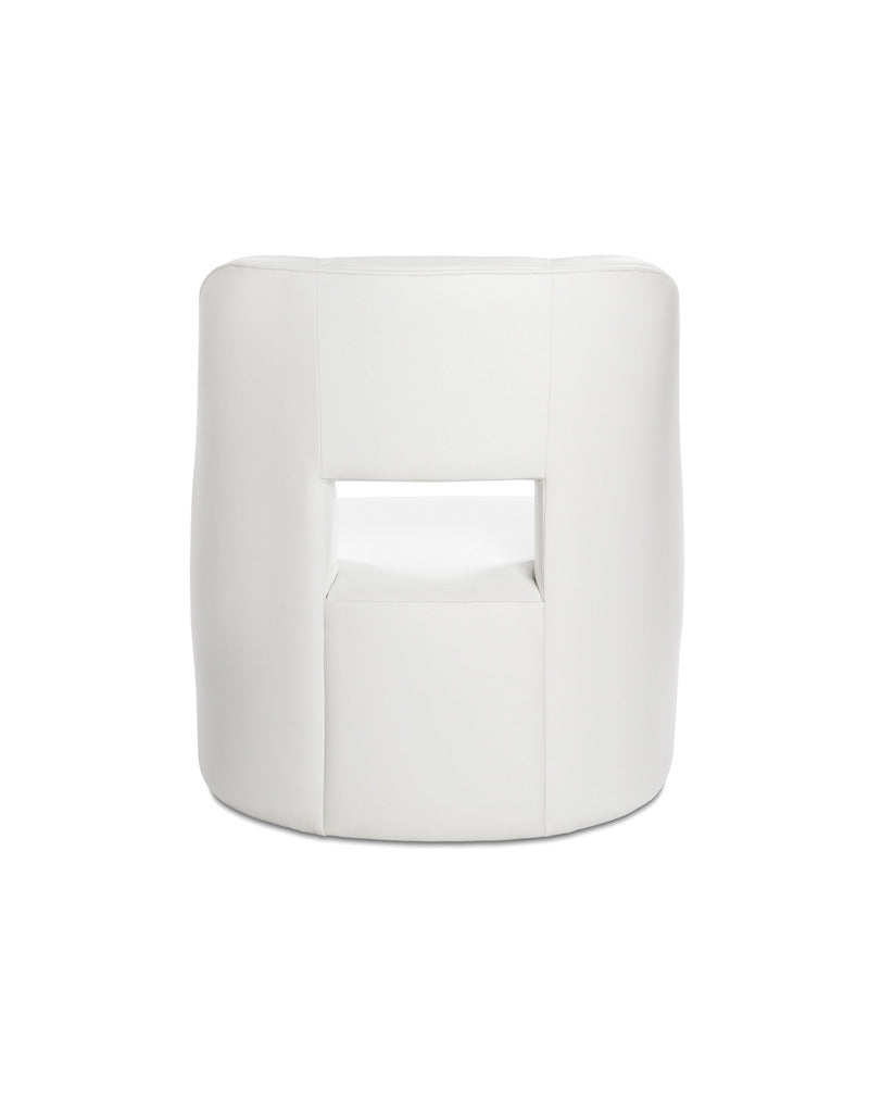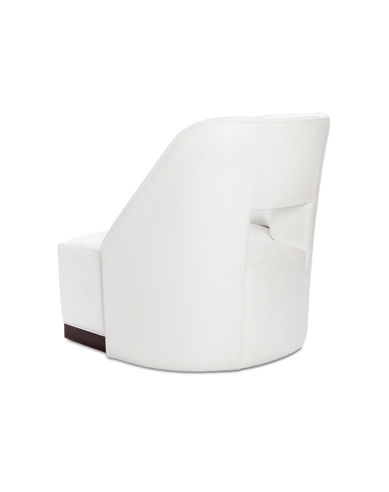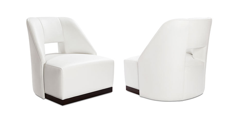 tight upholstered swivel chair with “cut-out” back detail and show-wood or lacquer base.