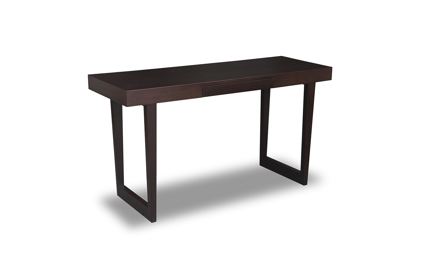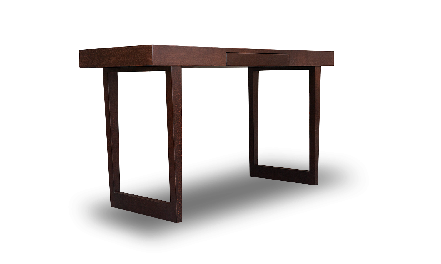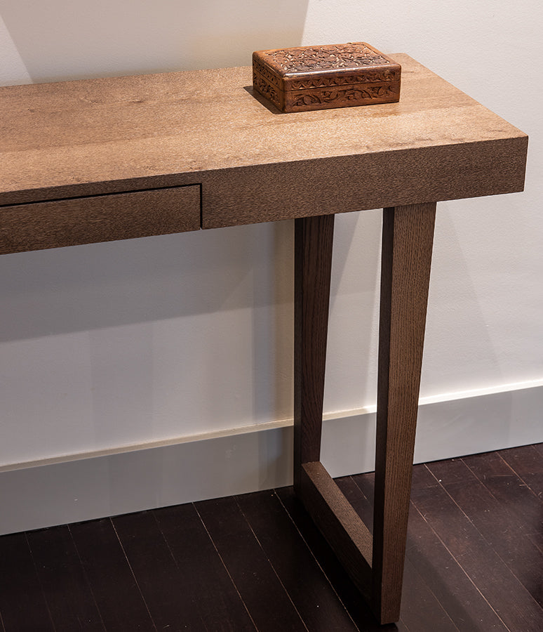 This desk features an oak veneer top and solid wood legs. It is available in oak with standard finishes. Optional drawers are also available. Alternate sizes or finishes available on request.