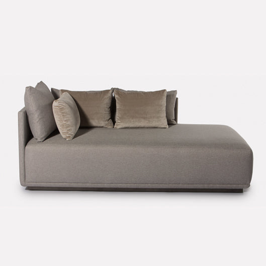 The slim clean lines that constitute the body of the VERONA chaise lounge are giving it a distinguished level of finesse and allow for extensive seating space. Comfortably upholstered with memory foam and goose-down filling, the craftsmanship shows in every stitch and makes the sofa elegant yet cozy.