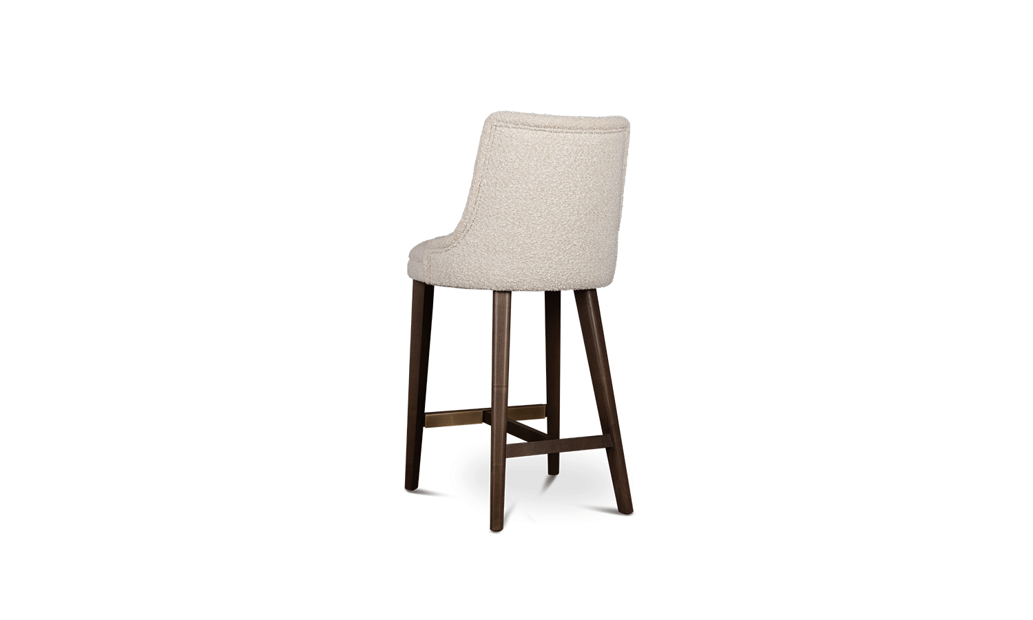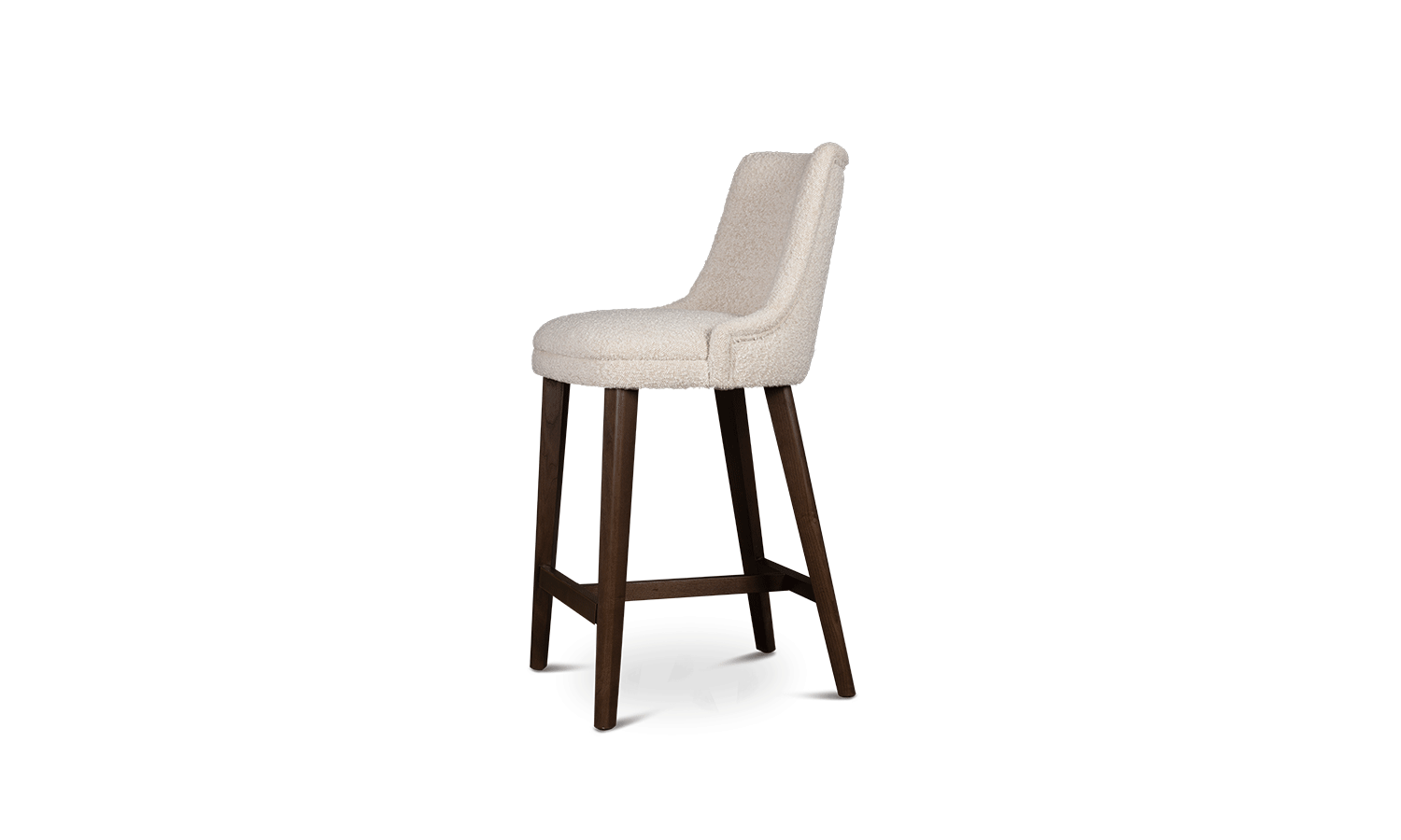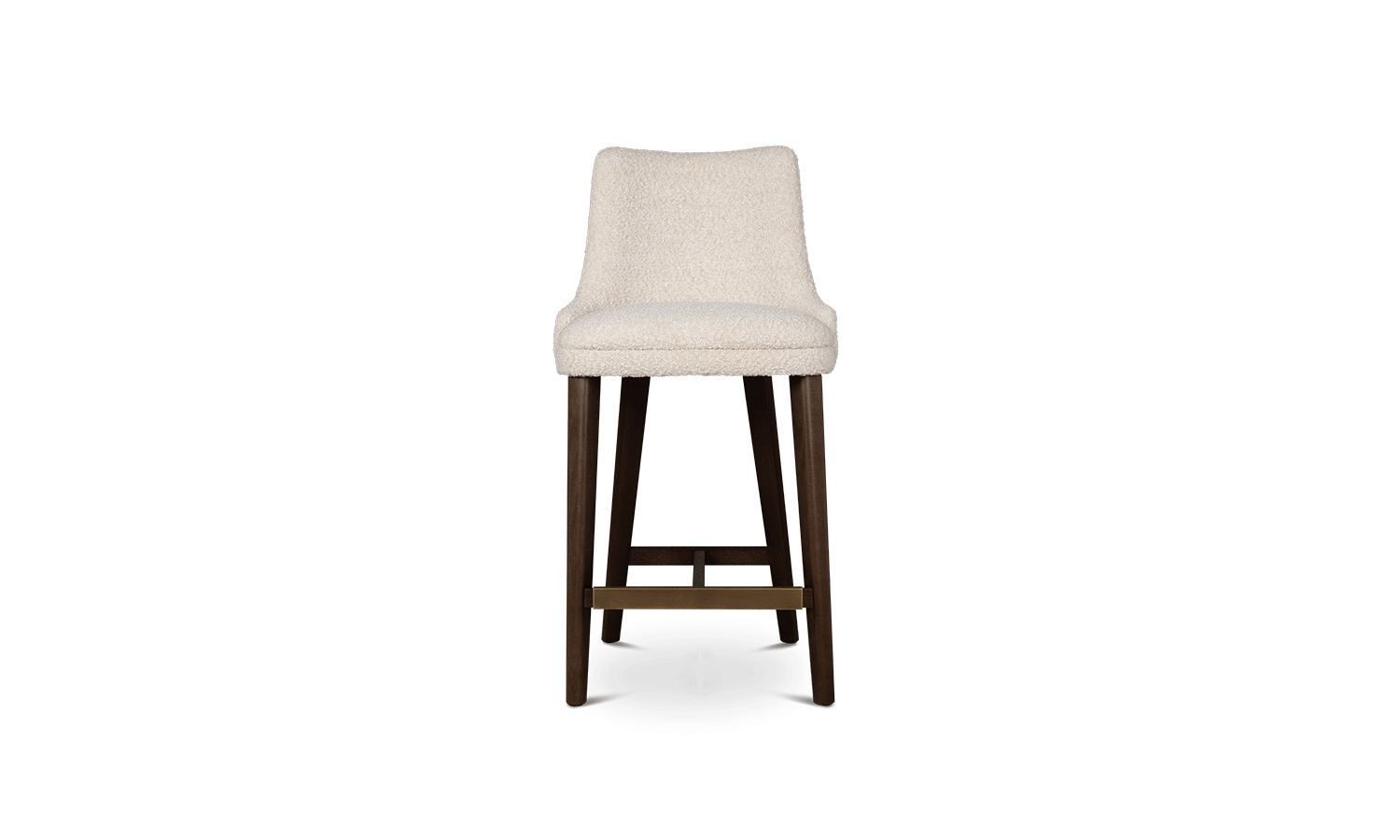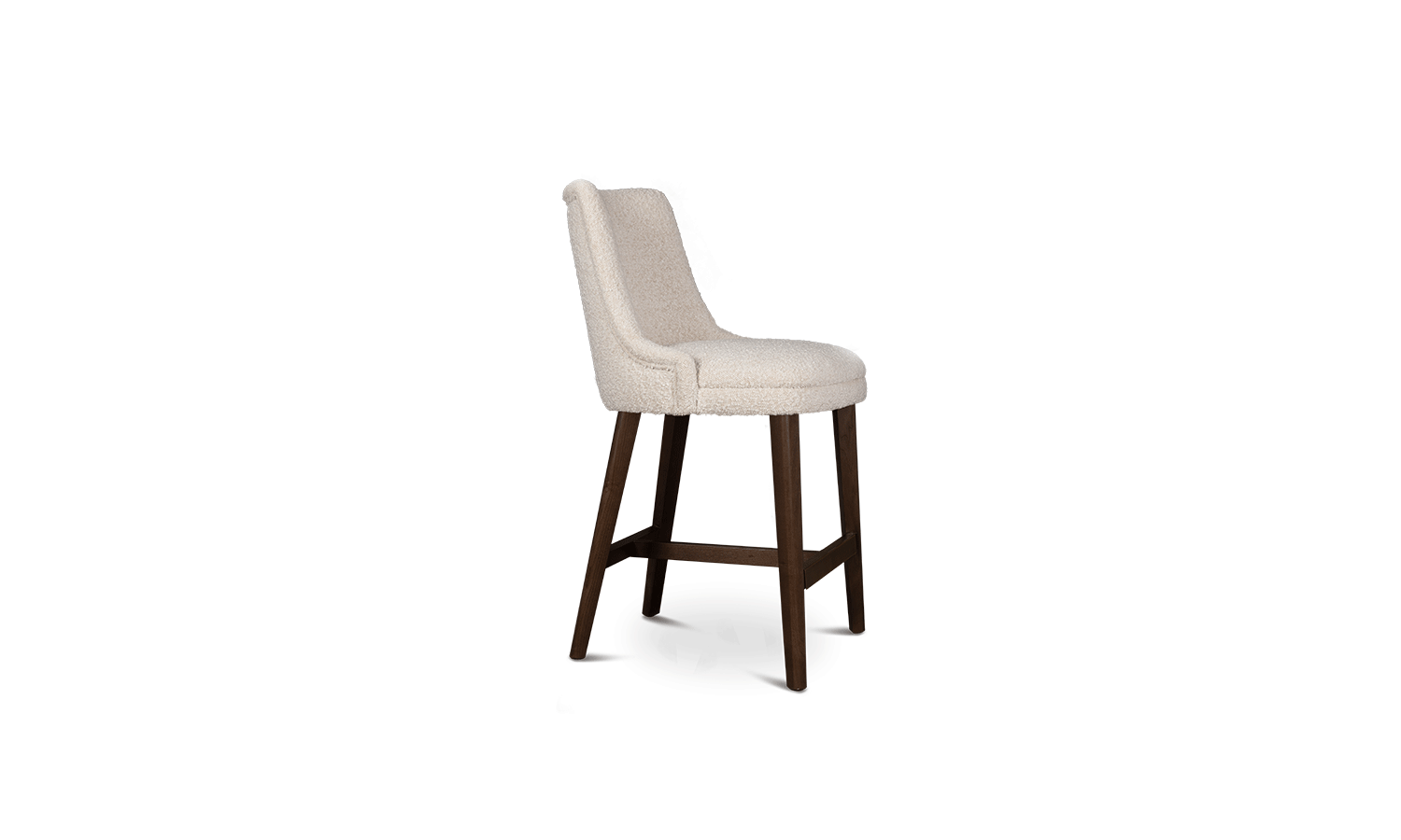This barstool features a solid wood structure and legs in standard finishes. It is possible in Cat. I-VI fabrics and leathers (2,0 m / un.) and also in customer’s own material. Variable seat heights are available with or without arms.