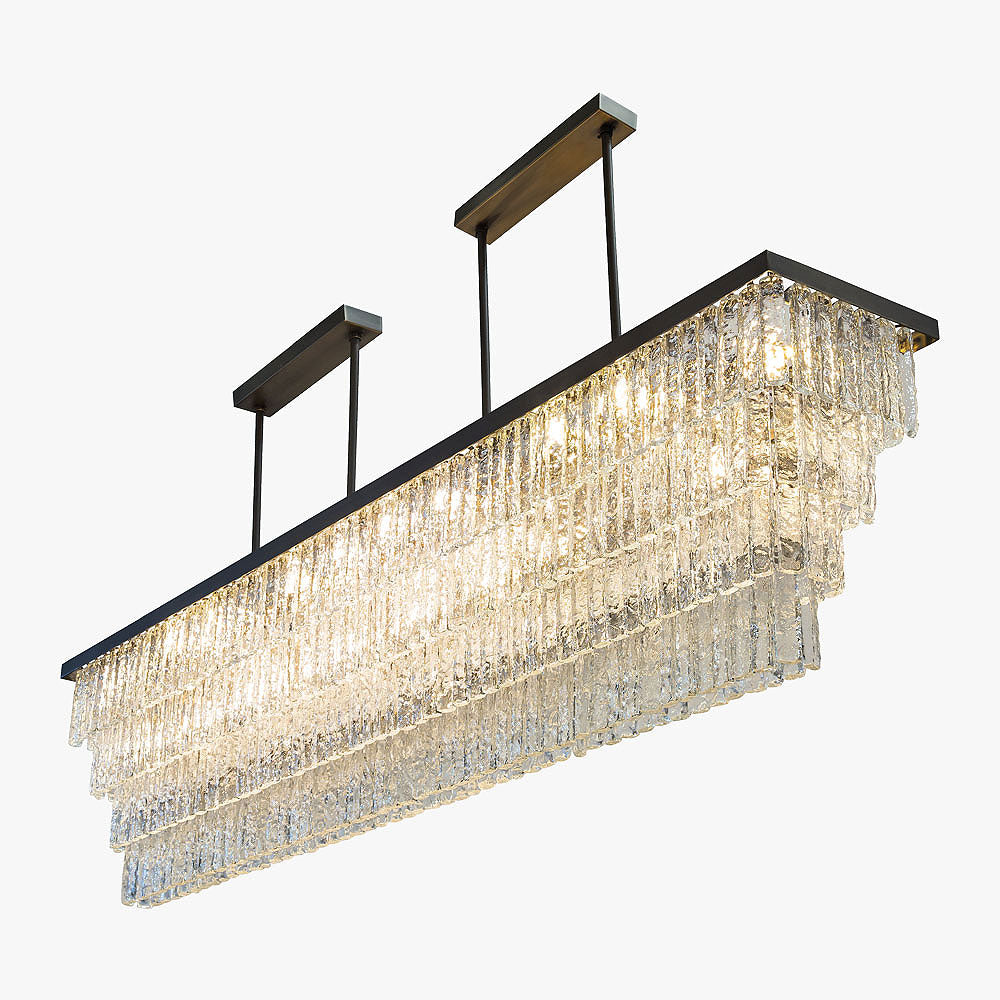 The latest edition to the Villanova range is a stunning piece decorated with layers of small Murano glass drops each individually hammered to give a more unique take on a design classic. This statement chandelier would work perfectly over a dining room table, a central island or a large billiard table