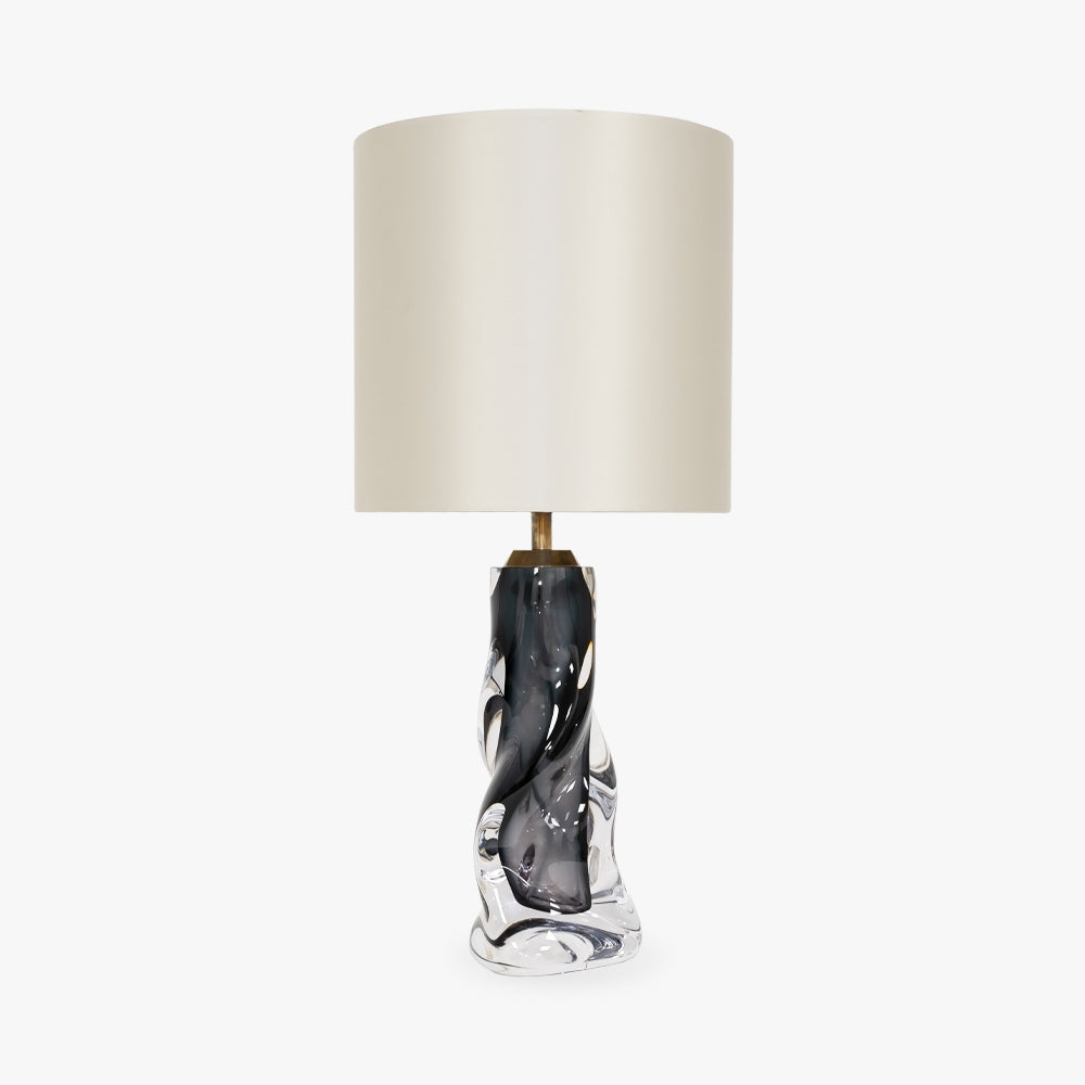 Each Vortex table lamp is a unique art form. No two pieces are exactly the same, owing its sculptural form to a completely handmade, mould-free creation which allows for the unconstrained formation of each lamp’s graceful twists and folds. We find ourselves entranced by the frozen fluidity of the Vortex glass, which evokes contemplation with its extraordinary beauty. IMPORTANT NOTE - Amber and Midnight glass finishes are currently only available as singles.